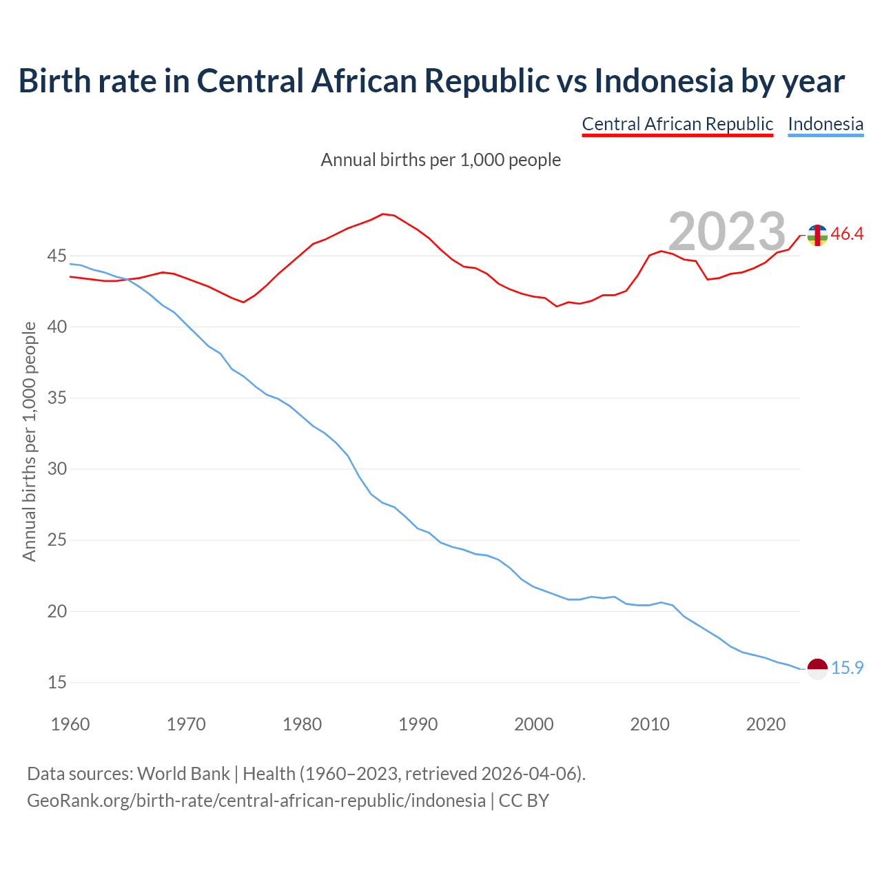 GeoRank.org/birth-rate/central-african-republic/indonesia | CC BY