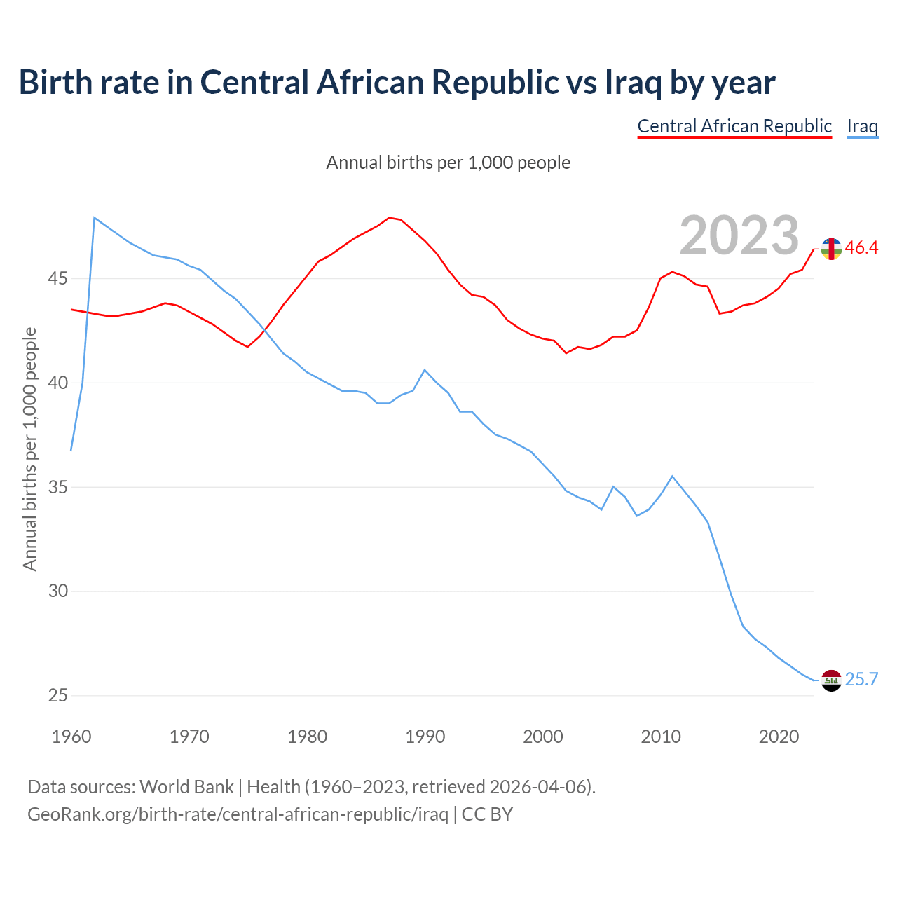 GeoRank.org/birth-rate/central-african-republic/iraq | CC BY