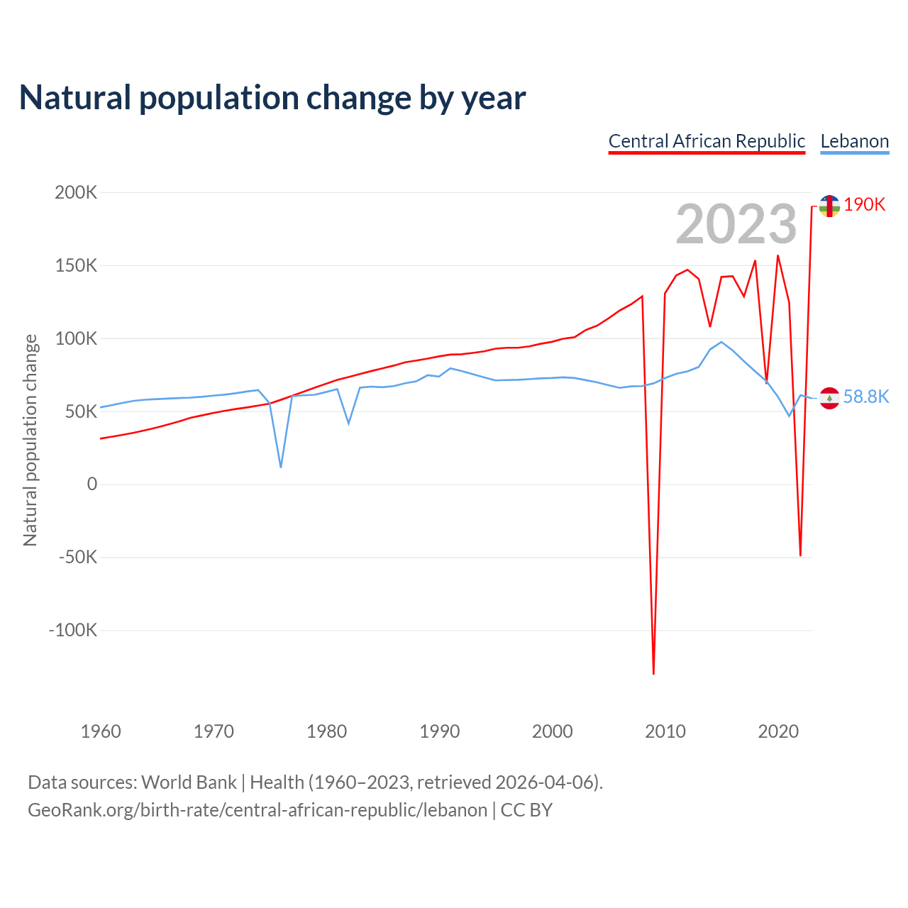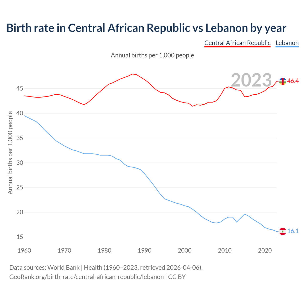 GeoRank.org/birth-rate/central-african-republic/lebanon | CC BY