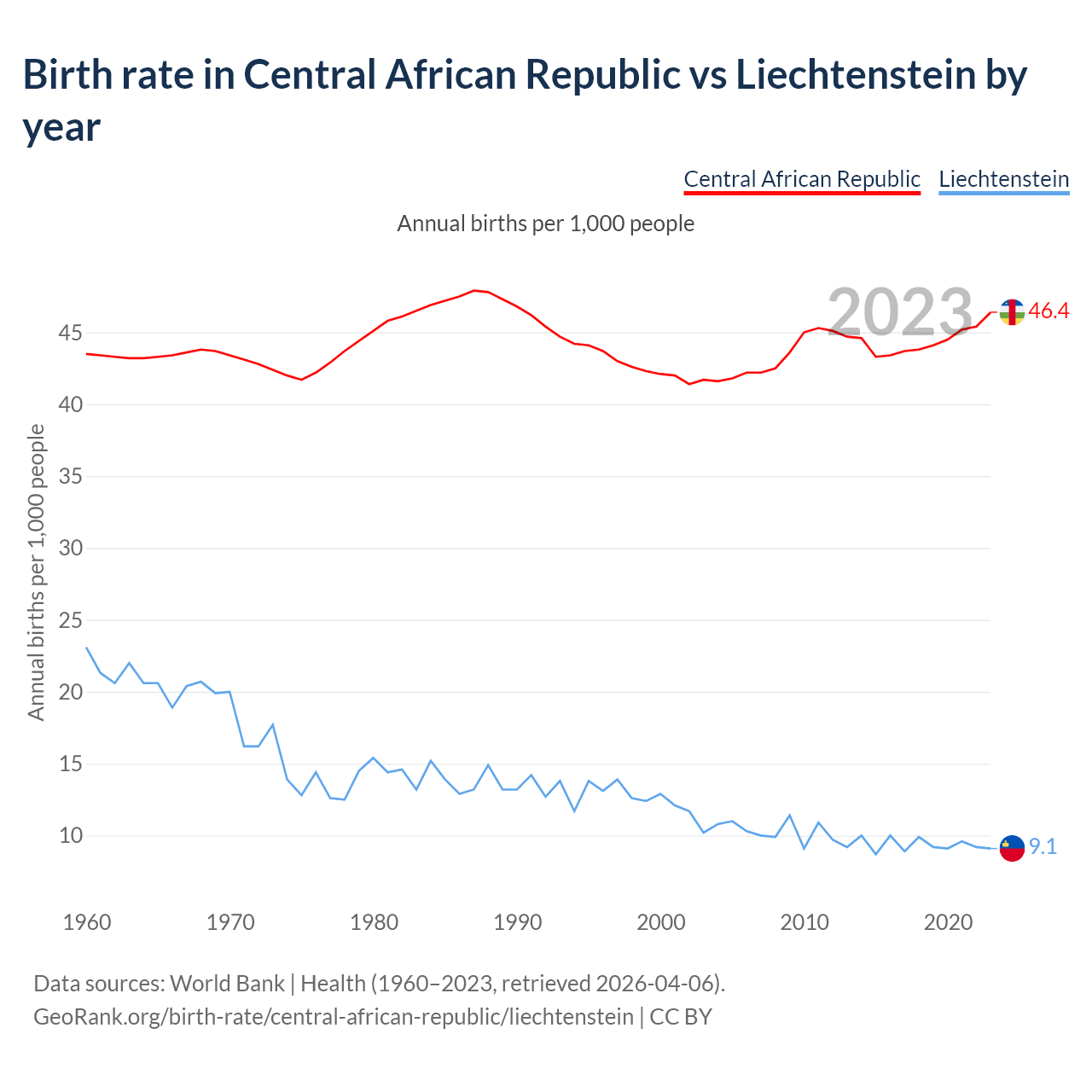 GeoRank.org/birth-rate/central-african-republic/liechtenstein | CC BY