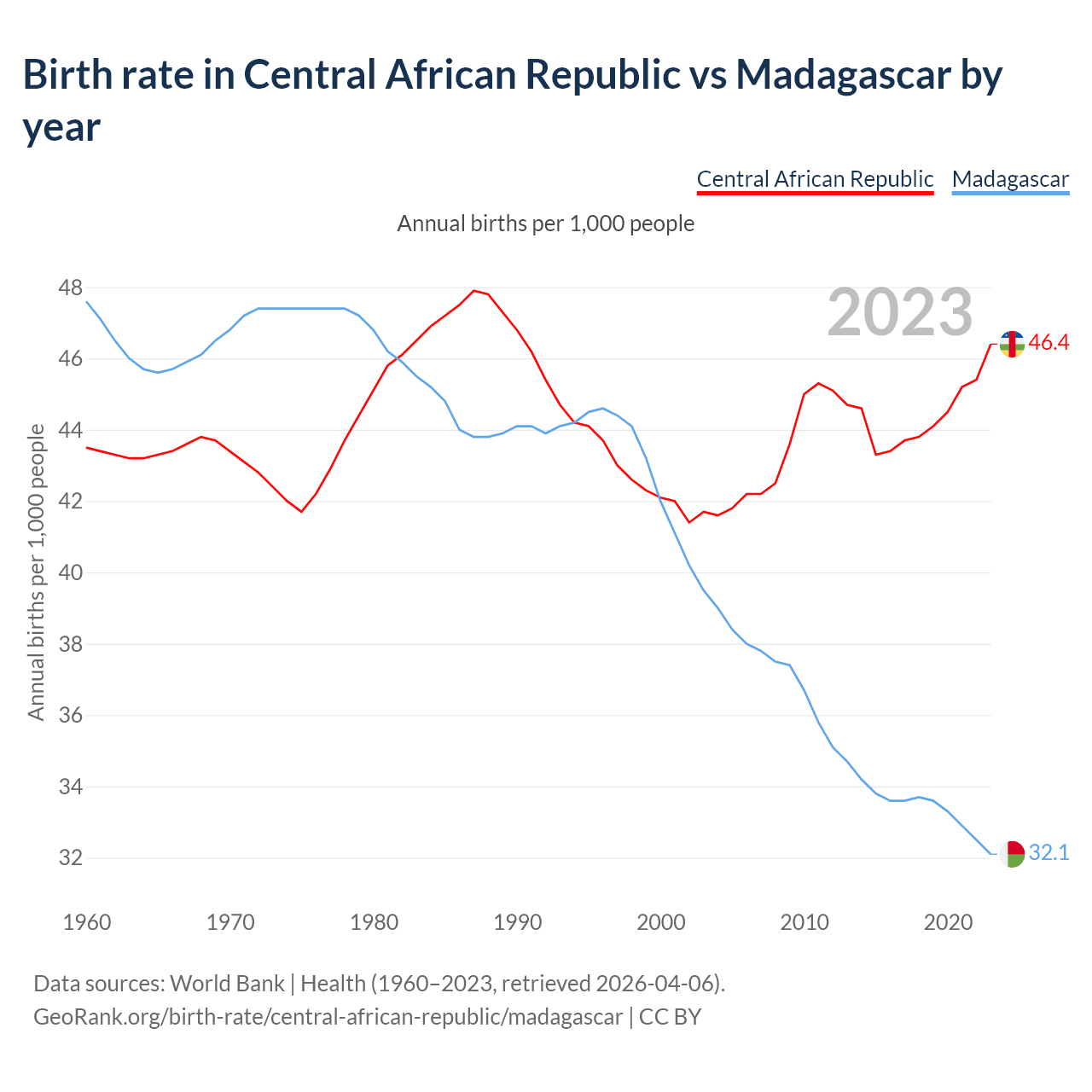 GeoRank.org/birth-rate/central-african-republic/madagascar | CC BY