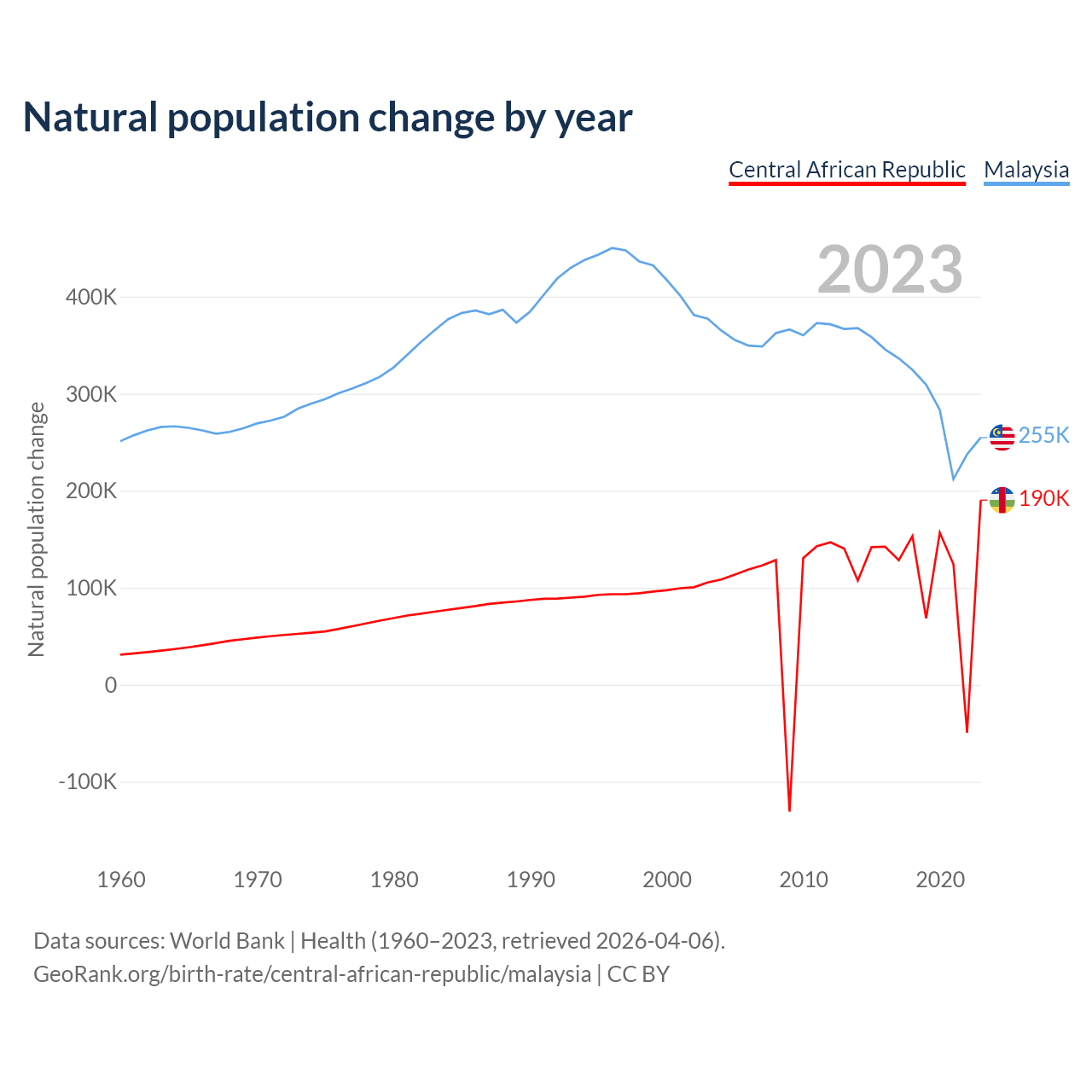 - The Central African Republic is ranked 1/196 by birth rate compared to 112/196 for Malaysia.