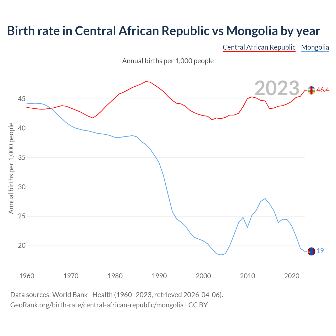 GeoRank.org/birth-rate/central-african-republic/mongolia | CC BY