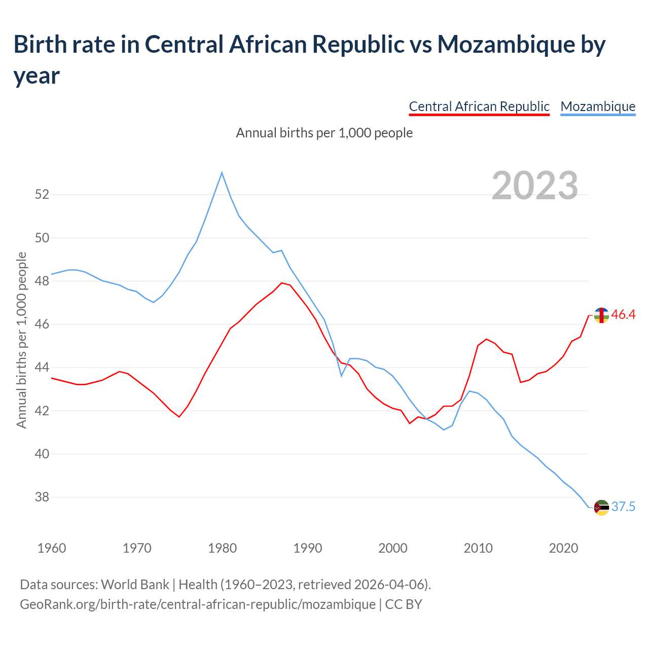 GeoRank.org/birth-rate/central-african-republic/mozambique | CC BY