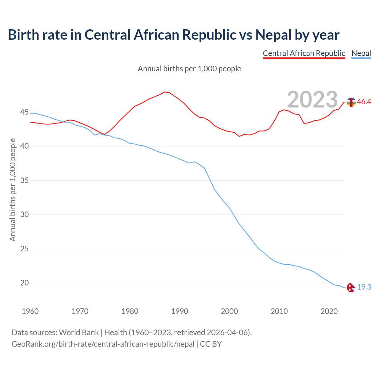 GeoRank.org/birth-rate/central-african-republic/nepal | CC BY