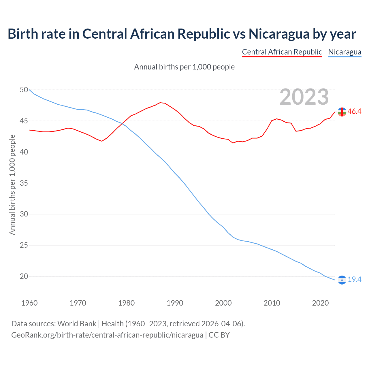GeoRank.org/birth-rate/central-african-republic/nicaragua | CC BY