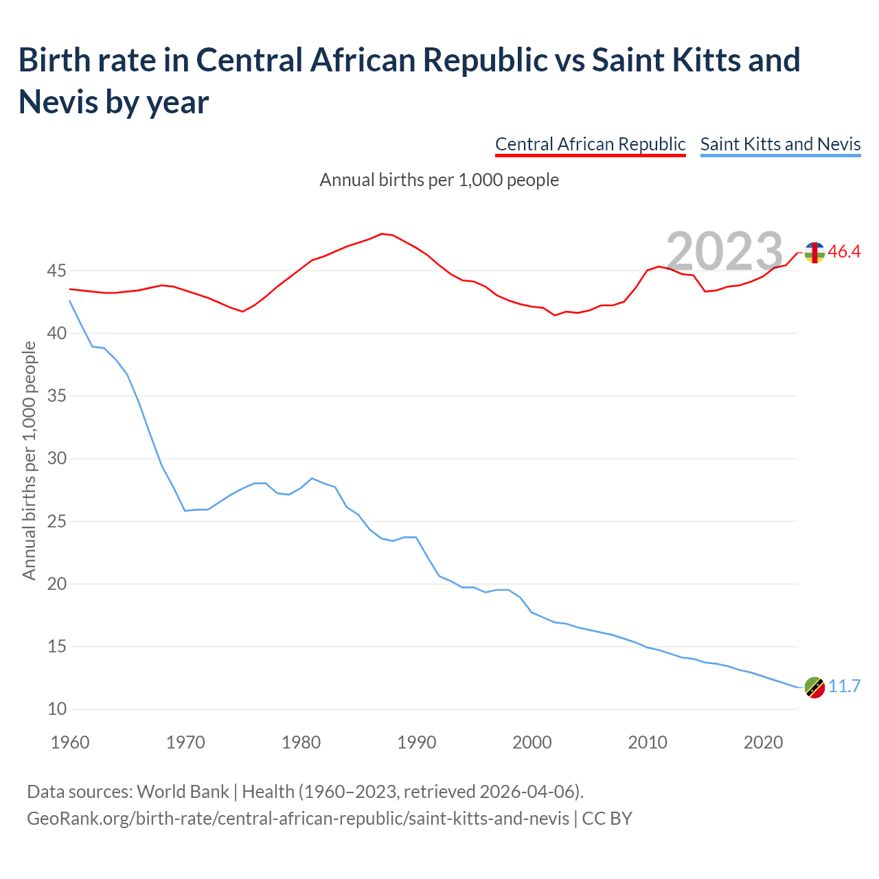 GeoRank.org/birth-rate/central-african-republic/saint-kitts-and-nevis | CC BY