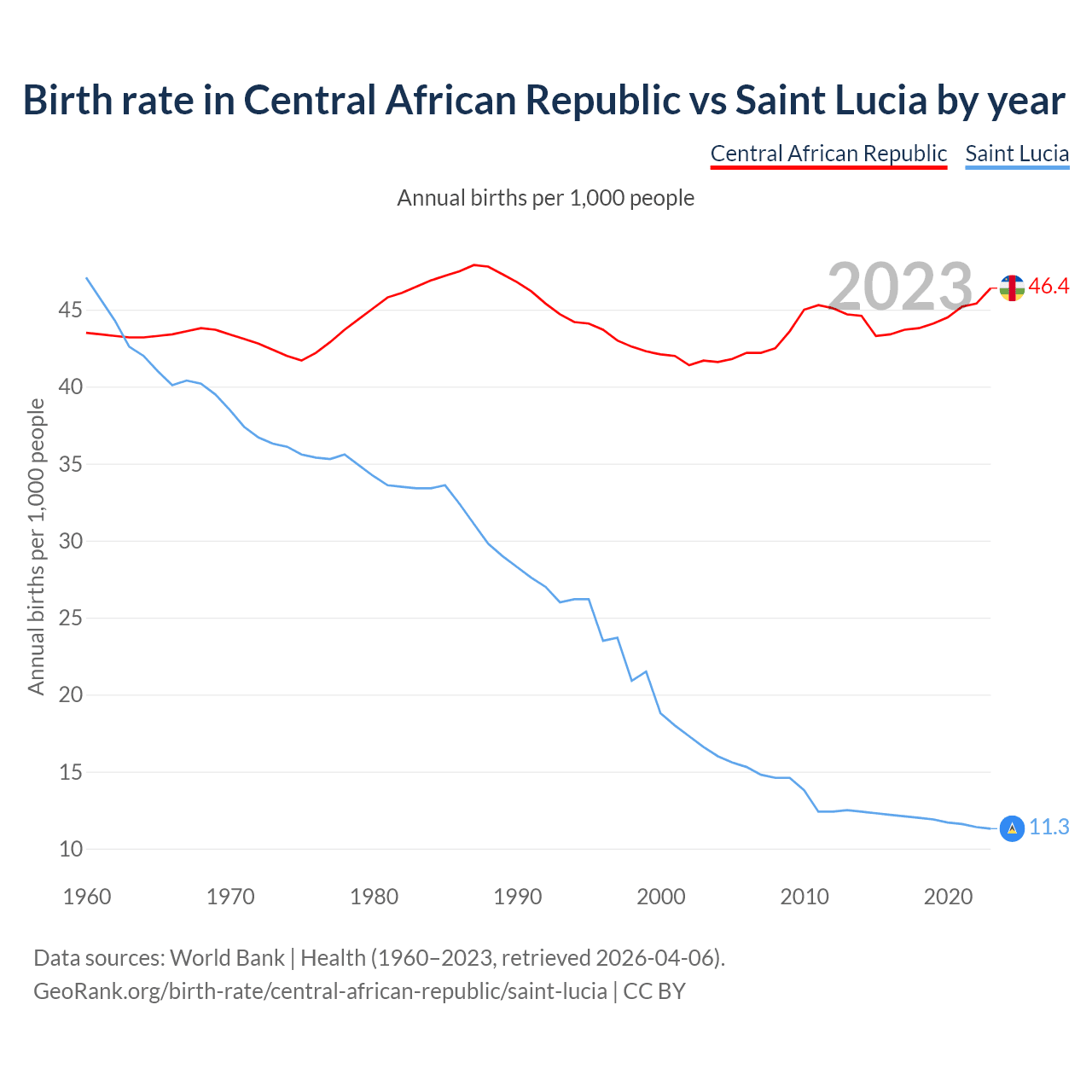GeoRank.org/birth-rate/central-african-republic/saint-lucia | CC BY