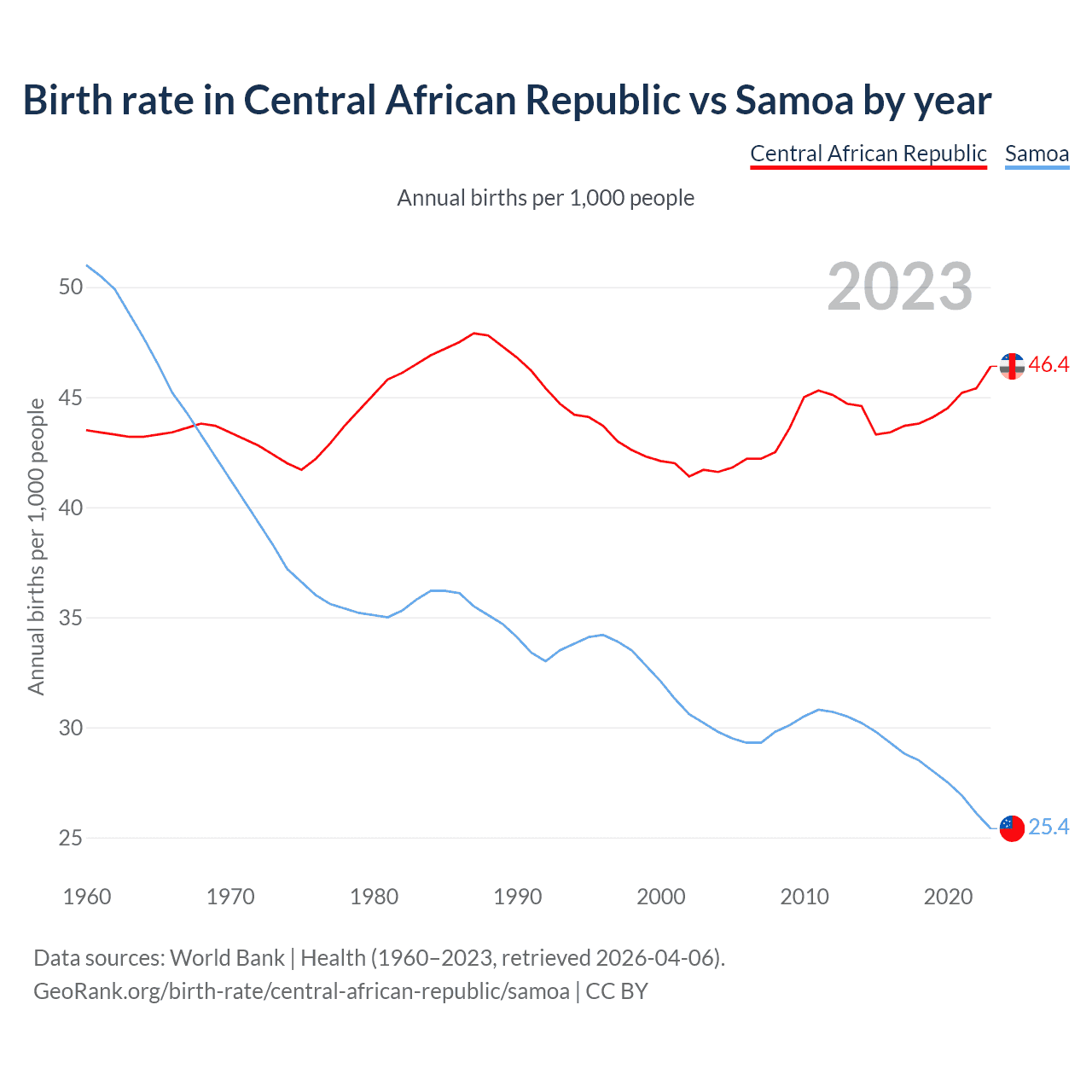GeoRank.org/birth-rate/central-african-republic/samoa | CC BY