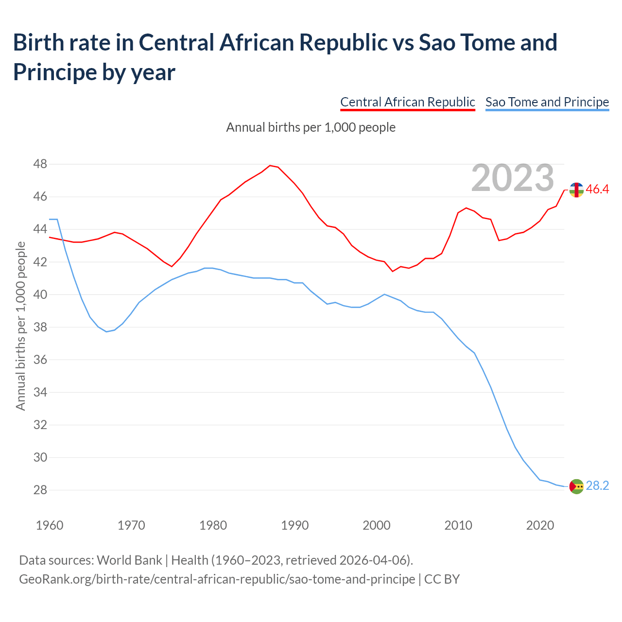 GeoRank.org/birth-rate/central-african-republic/sao-tome-and-principe | CC BY