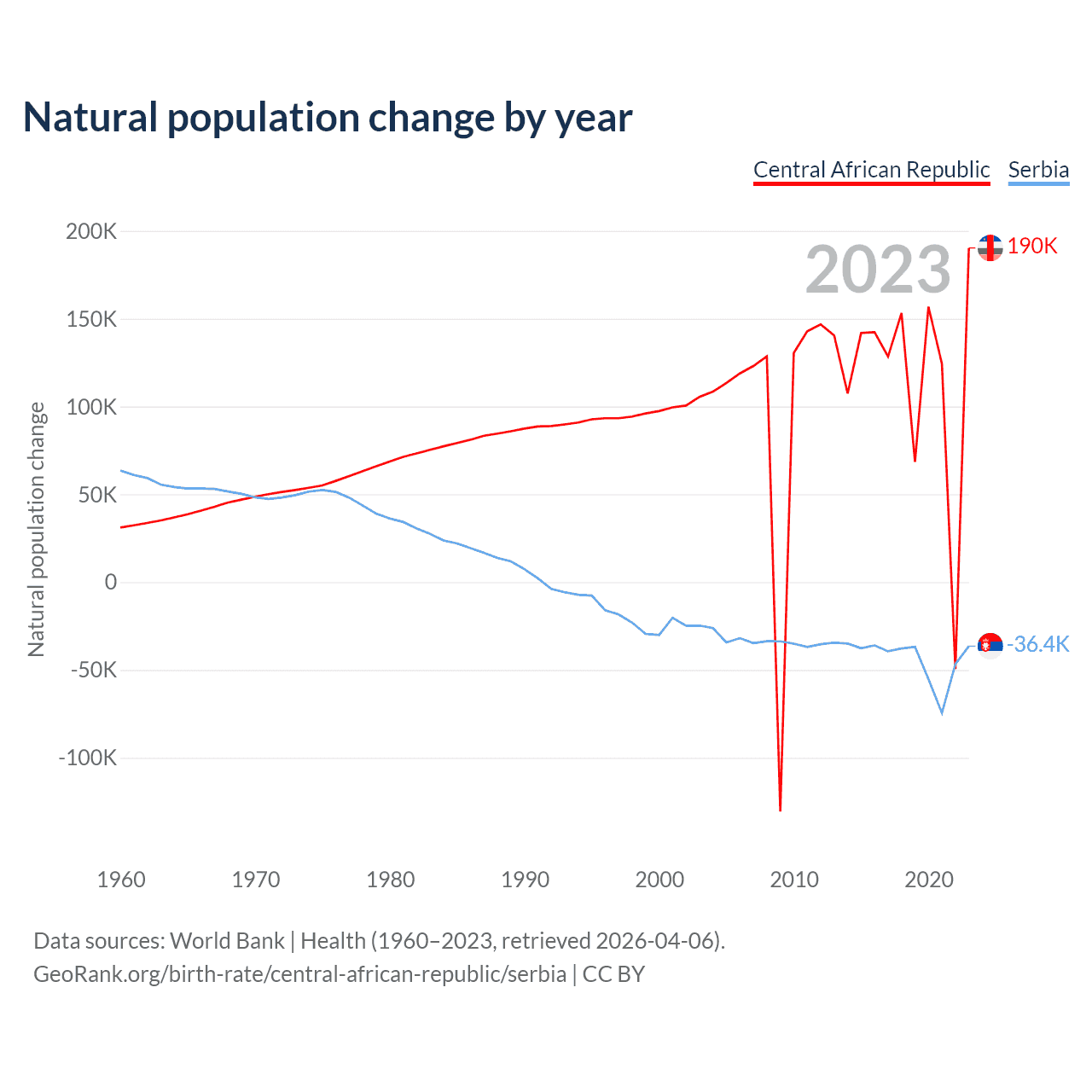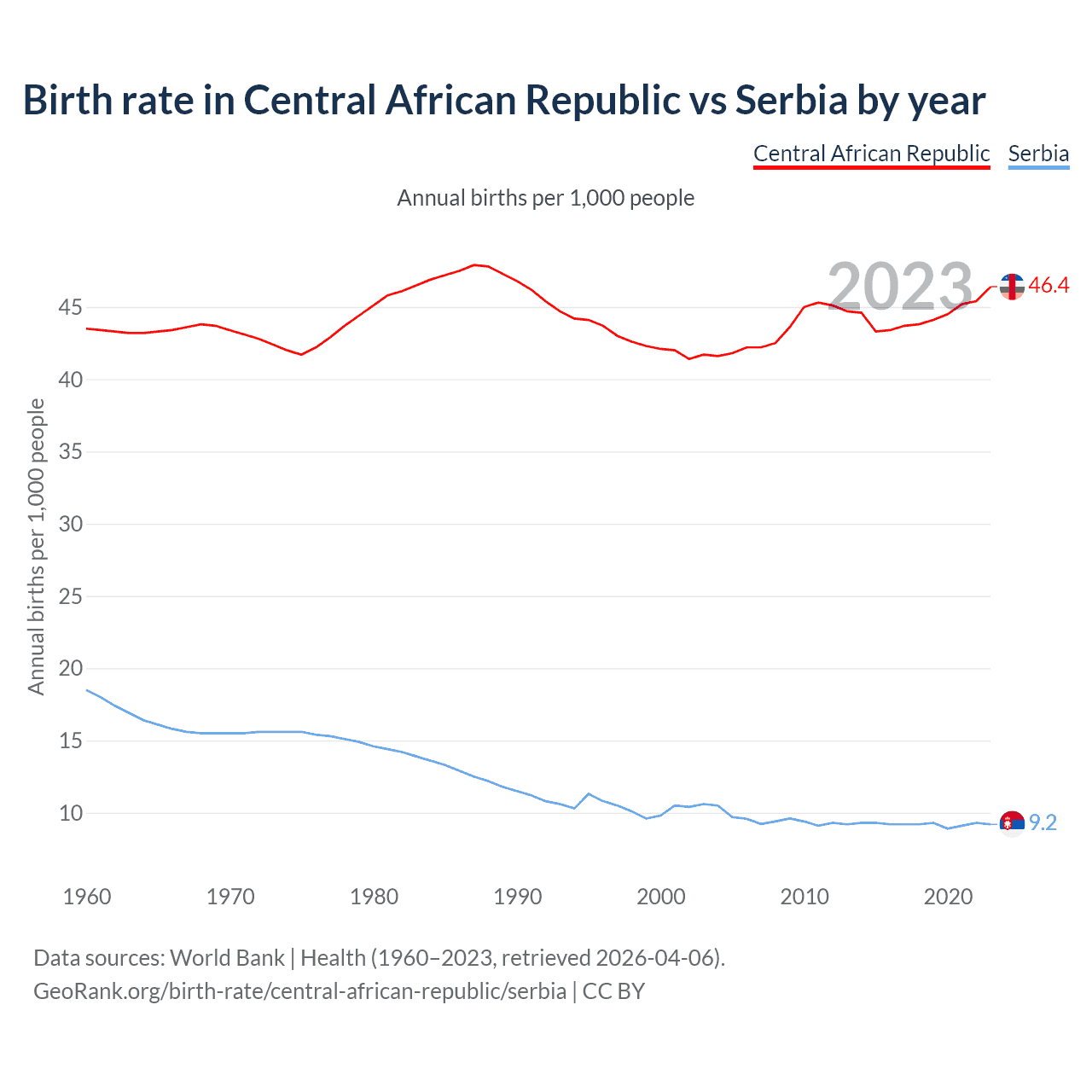 GeoRank.org/birth-rate/central-african-republic/serbia | CC BY
