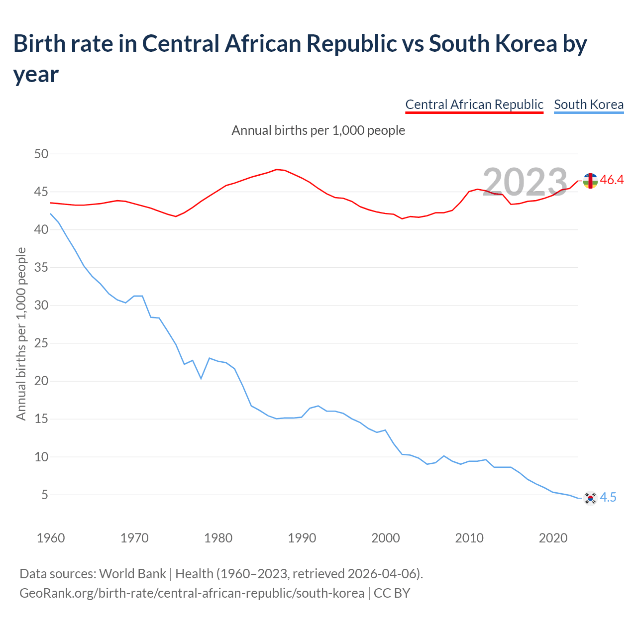 GeoRank.org/birth-rate/central-african-republic/south-korea | CC BY