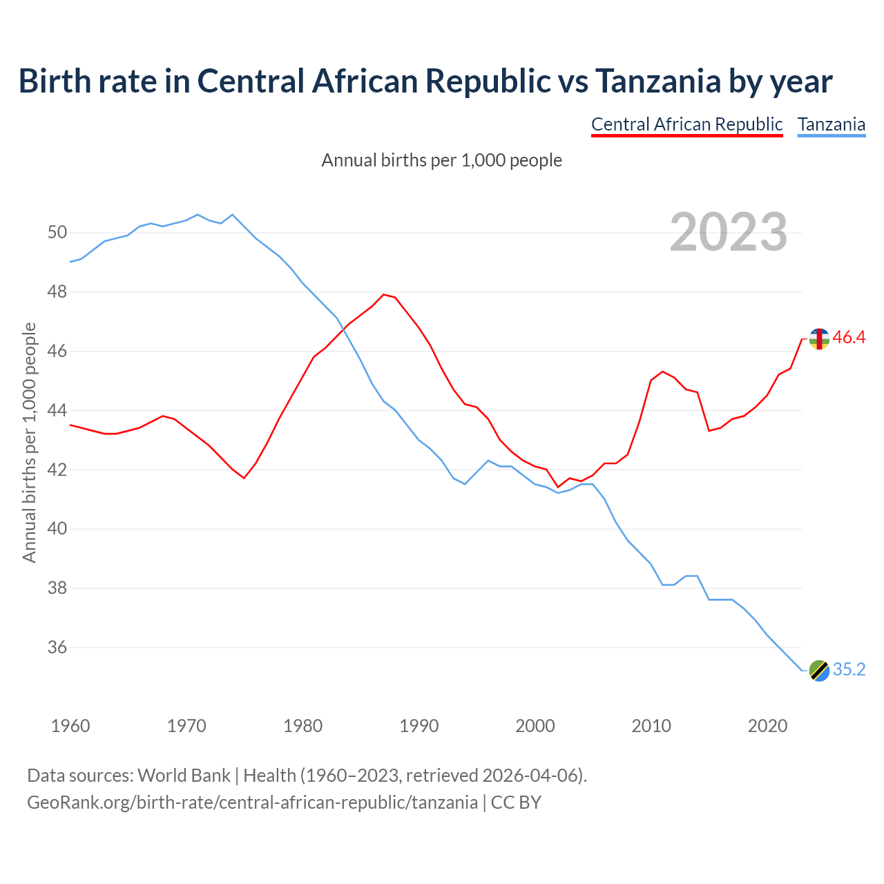 GeoRank.org/birth-rate/central-african-republic/tanzania | CC BY