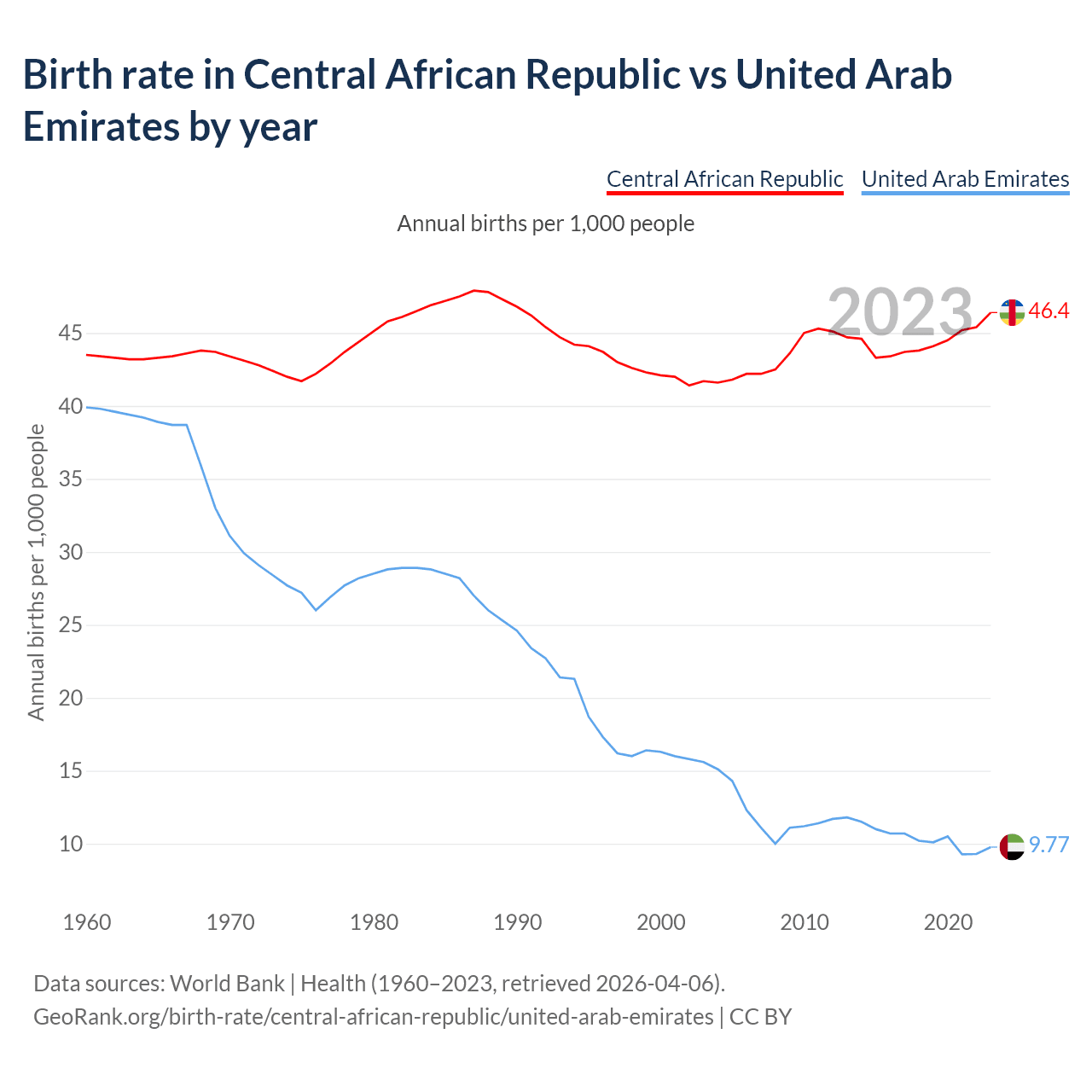 GeoRank.org/birth-rate/central-african-republic/united-arab-emirates | CC BY