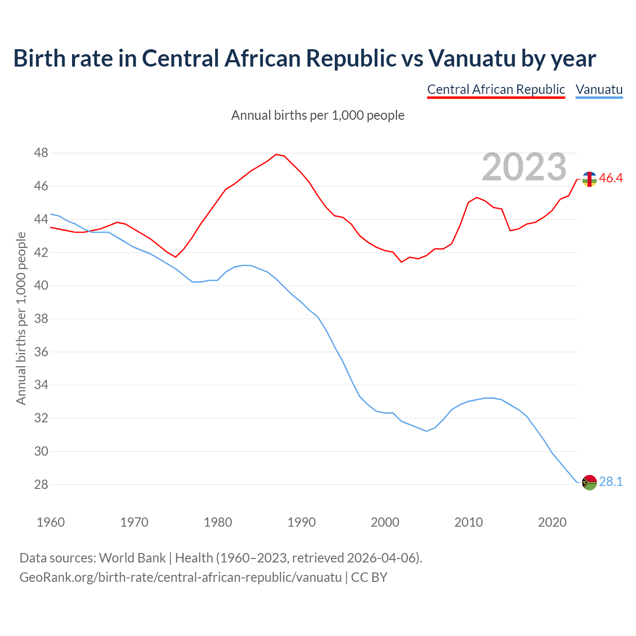 GeoRank.org/birth-rate/central-african-republic/vanuatu | CC BY