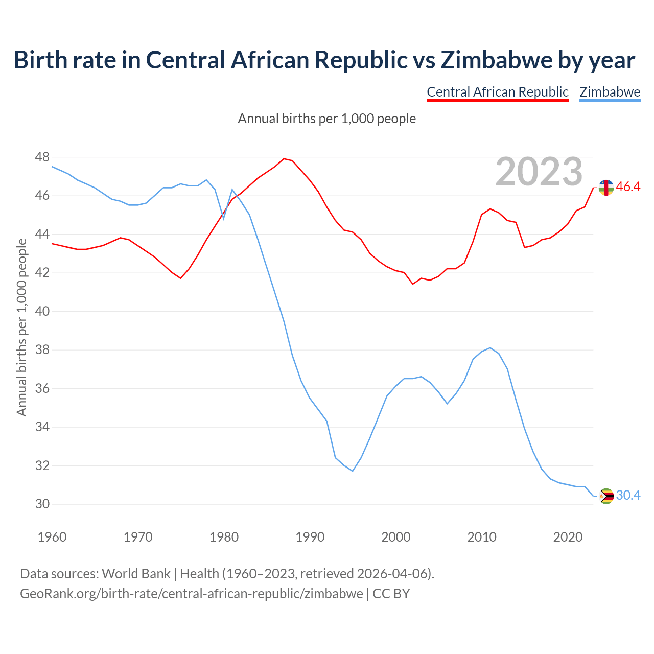 GeoRank.org/birth-rate/central-african-republic/zimbabwe | CC BY