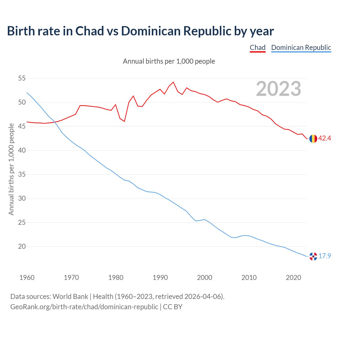 GeoRank.org/birth-rate/chad/dominican-republic | CC BY