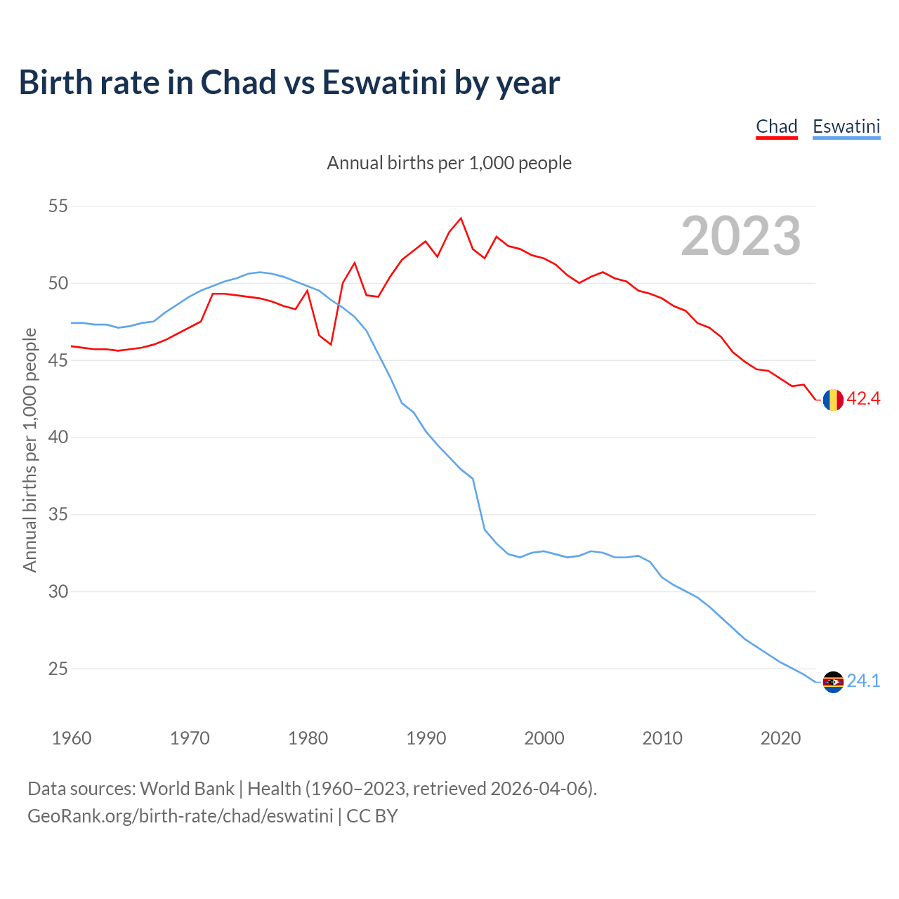 GeoRank.org/birth-rate/chad/eswatini | CC BY