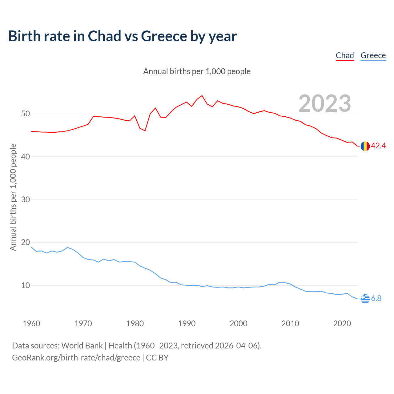 GeoRank.org/birth-rate/chad/greece | CC BY