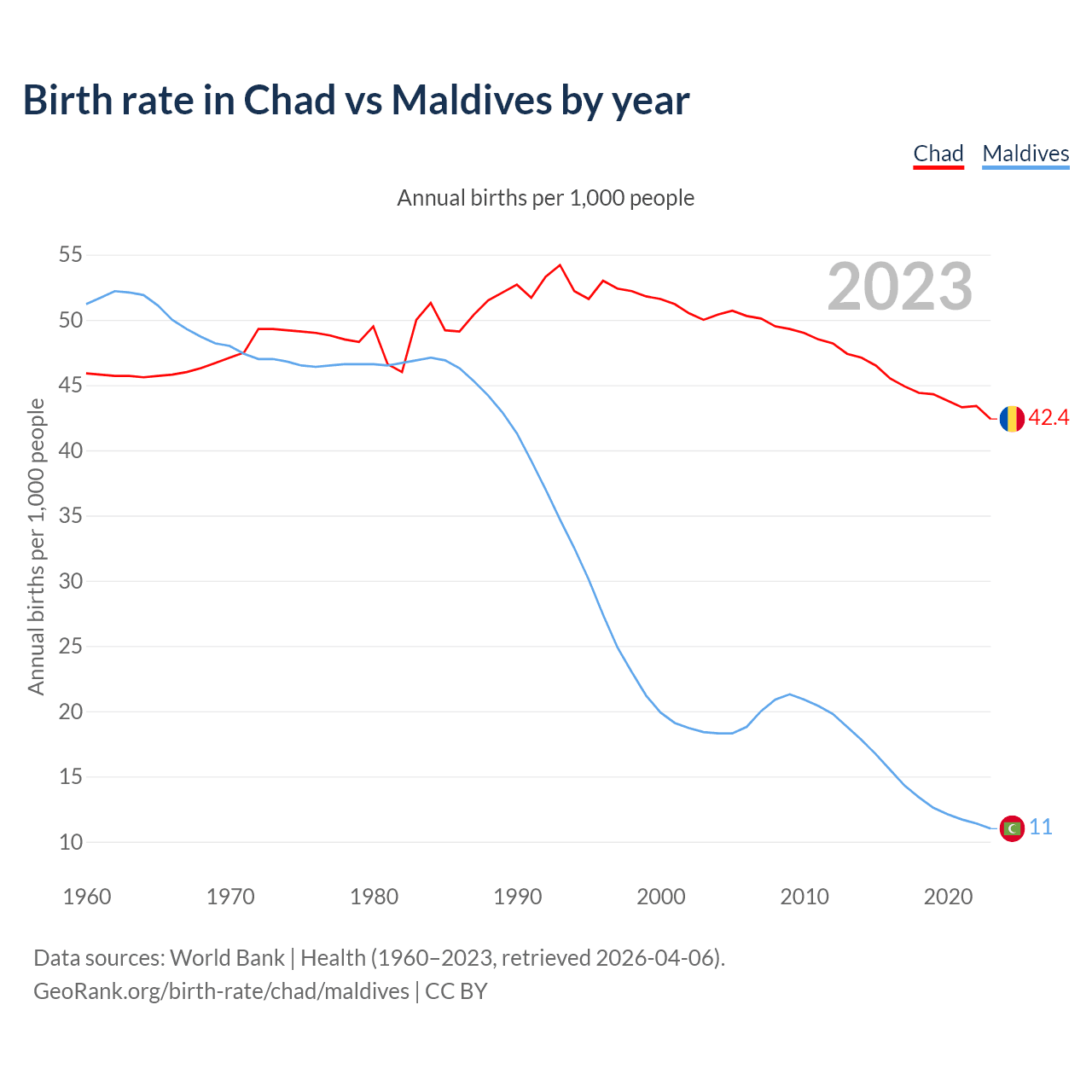 GeoRank.org/birth-rate/chad/maldives | CC BY