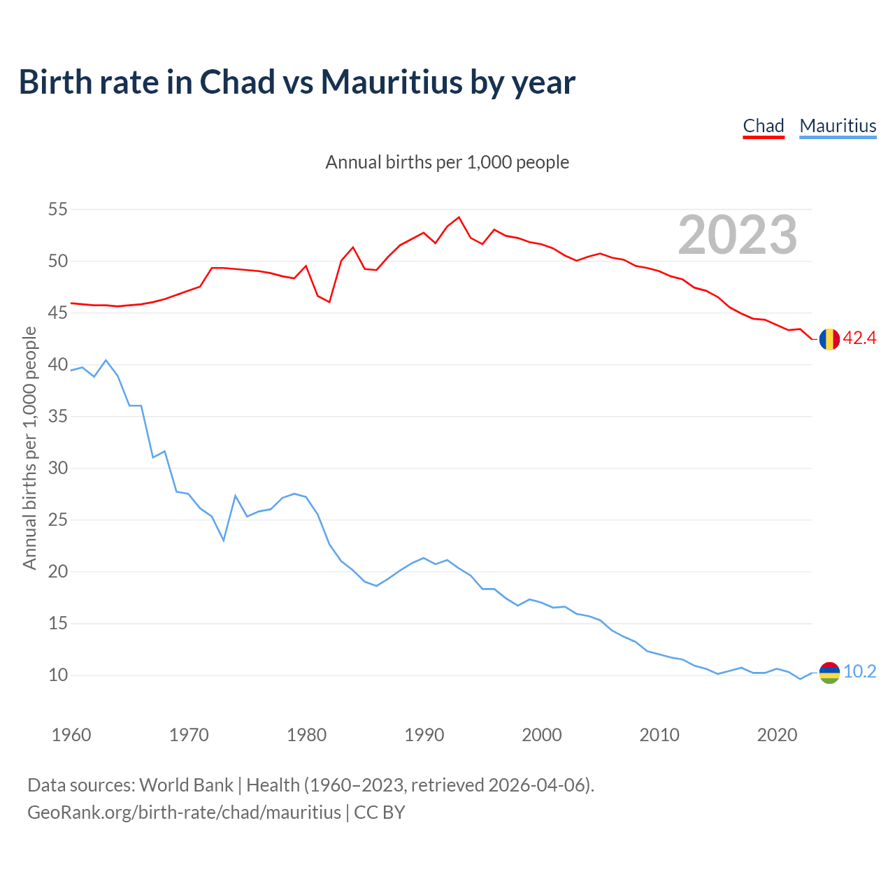 GeoRank.org/birth-rate/chad/mauritius | CC BY