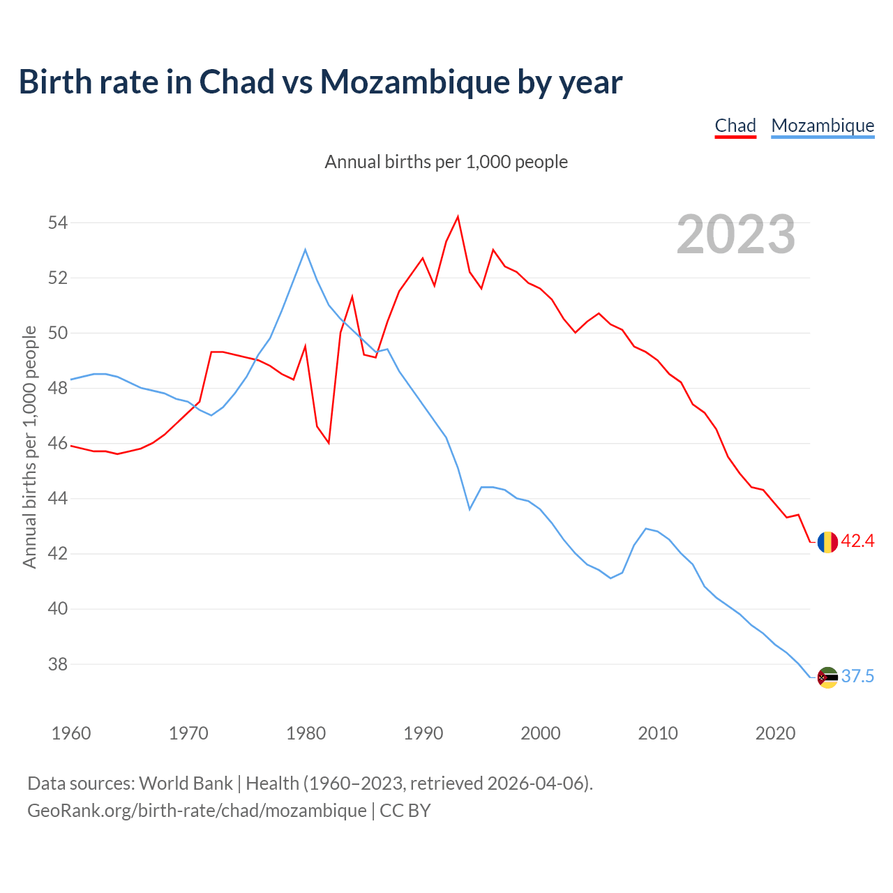 GeoRank.org/birth-rate/chad/mozambique | CC BY