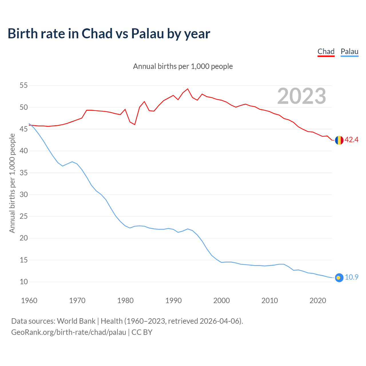 GeoRank.org/birth-rate/chad/palau | CC BY