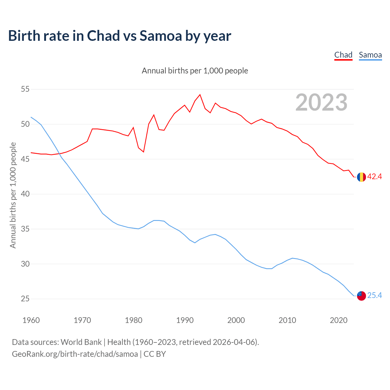 GeoRank.org/birth-rate/chad/samoa | CC BY
