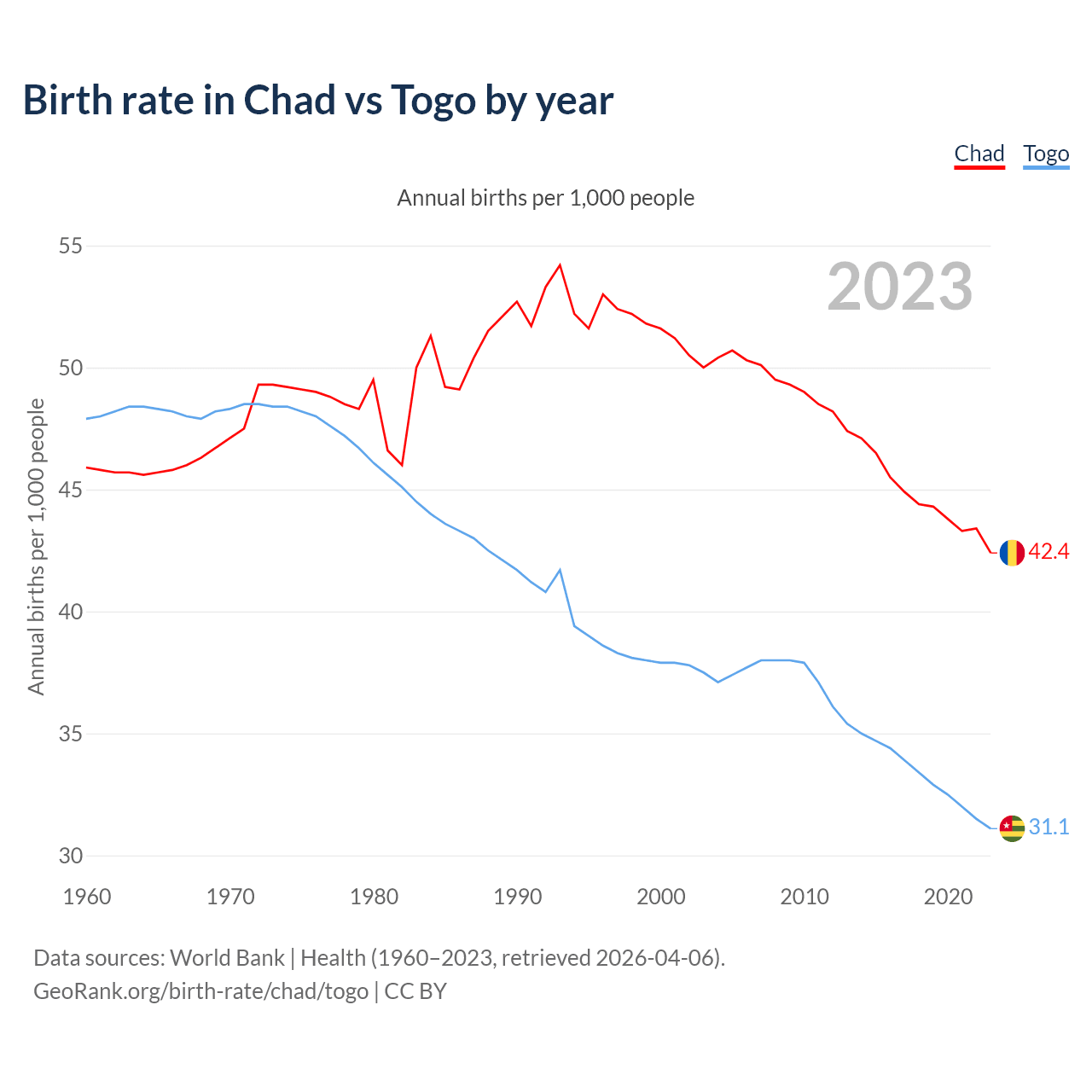GeoRank.org/birth-rate/chad/togo | CC BY