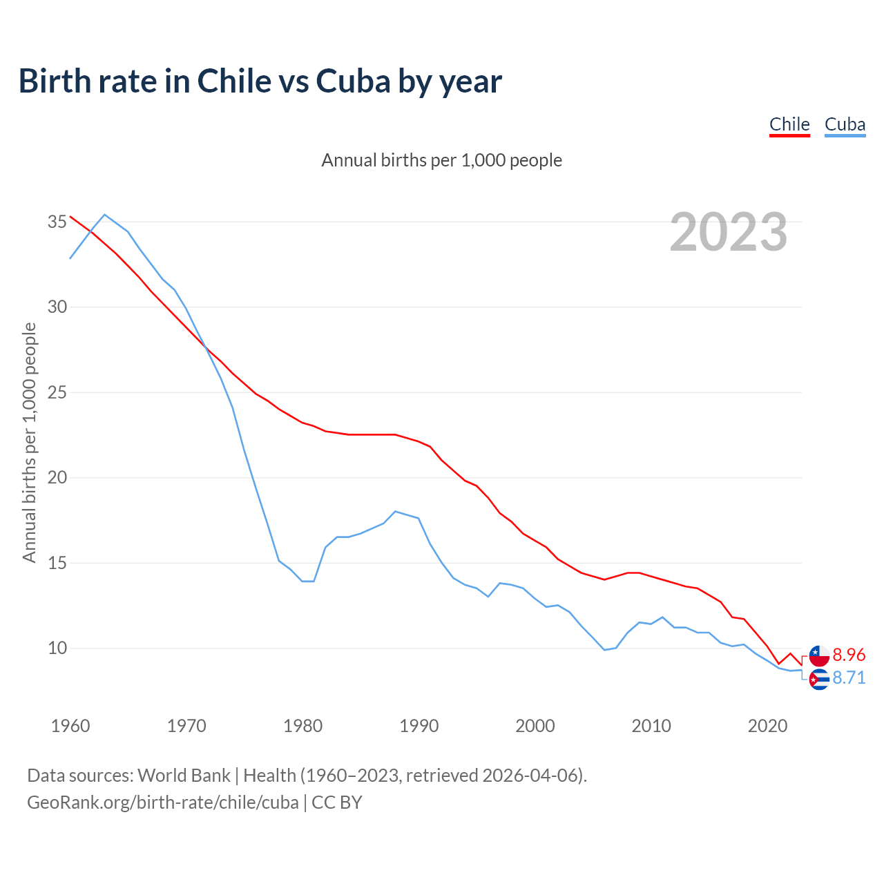 GeoRank.org/birth-rate/chile/cuba | CC BY
