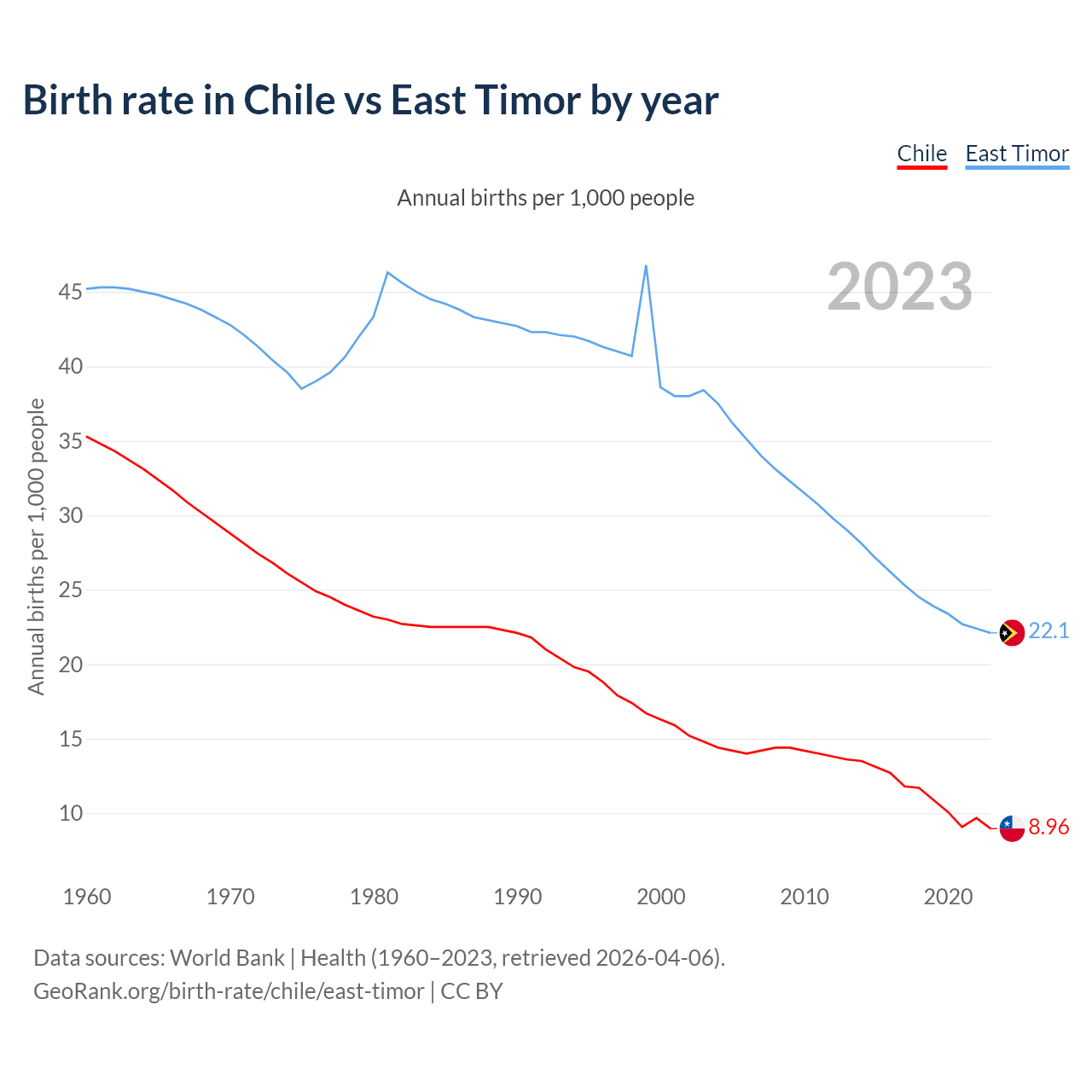 GeoRank.org/birth-rate/chile/east-timor | CC BY
