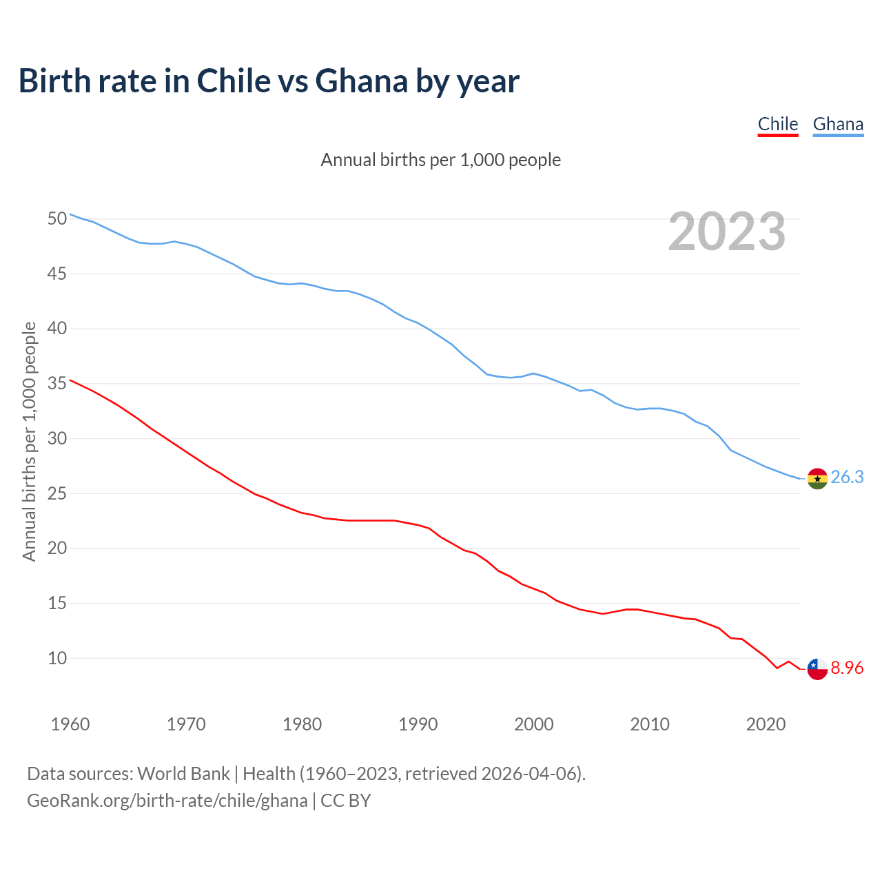 GeoRank.org/birth-rate/chile/ghana | CC BY