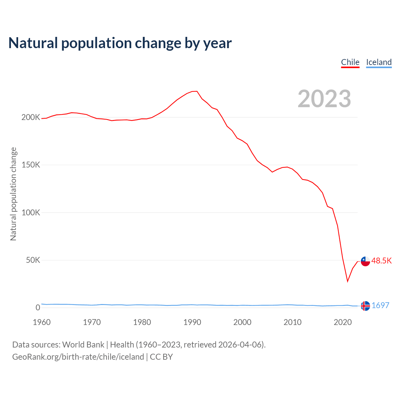 - Chile is ranked 164/196 by birth rate compared to 132/196 for Iceland.