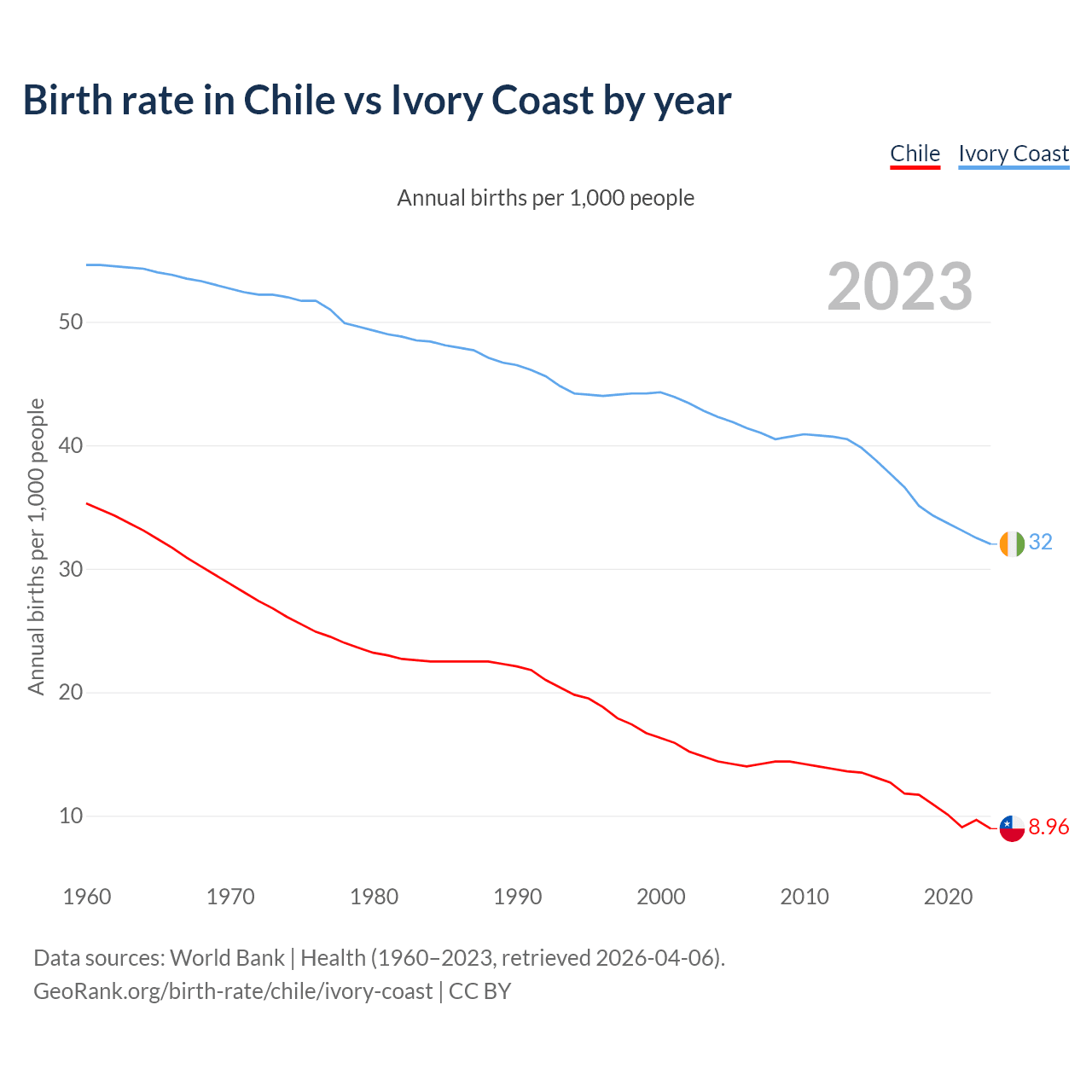 GeoRank.org/birth-rate/chile/ivory-coast | CC BY