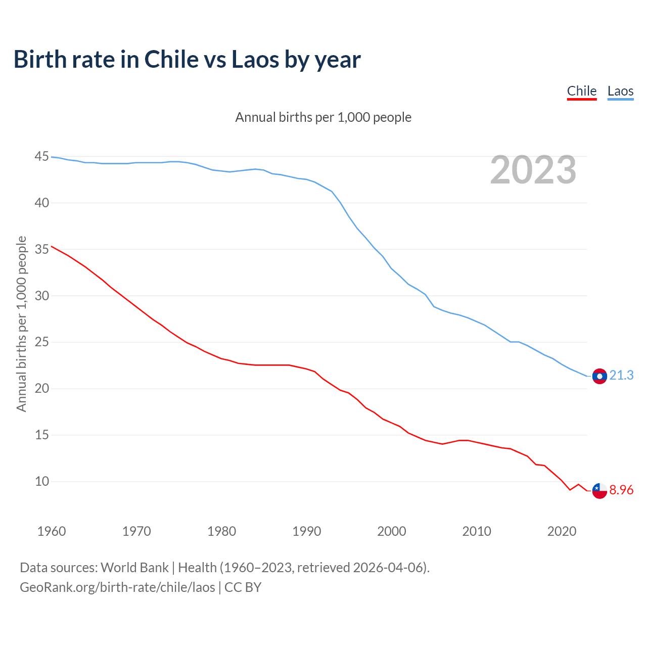 GeoRank.org/birth-rate/chile/laos | CC BY