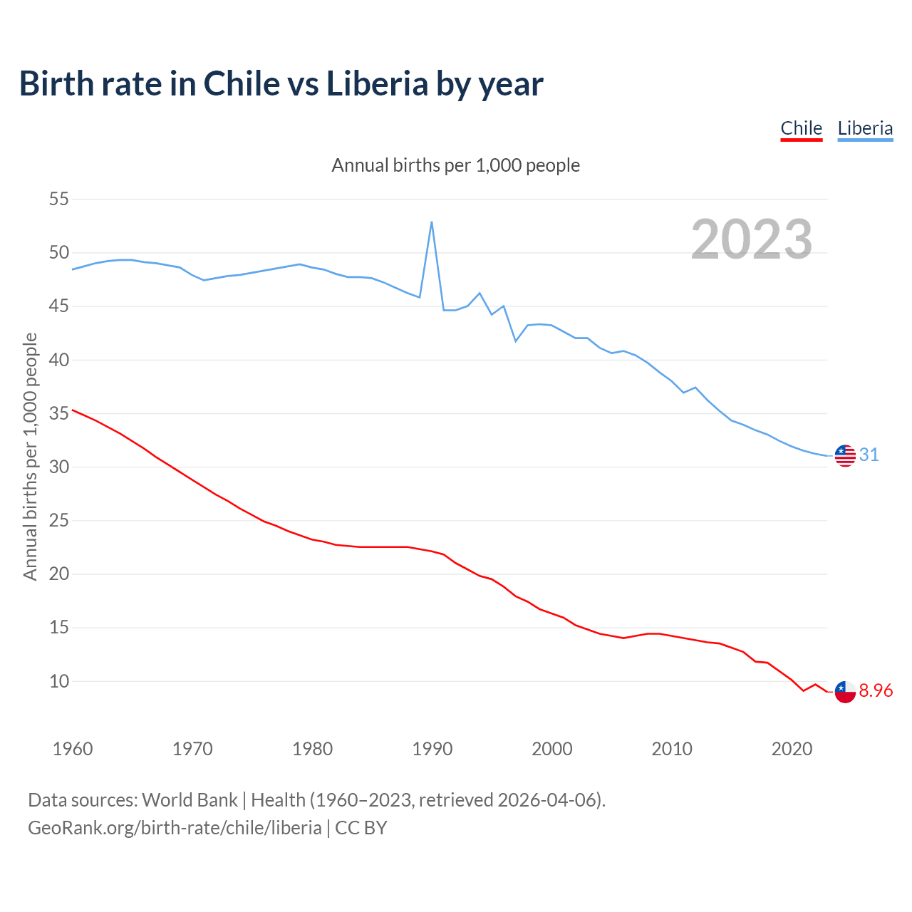 GeoRank.org/birth-rate/chile/liberia | CC BY