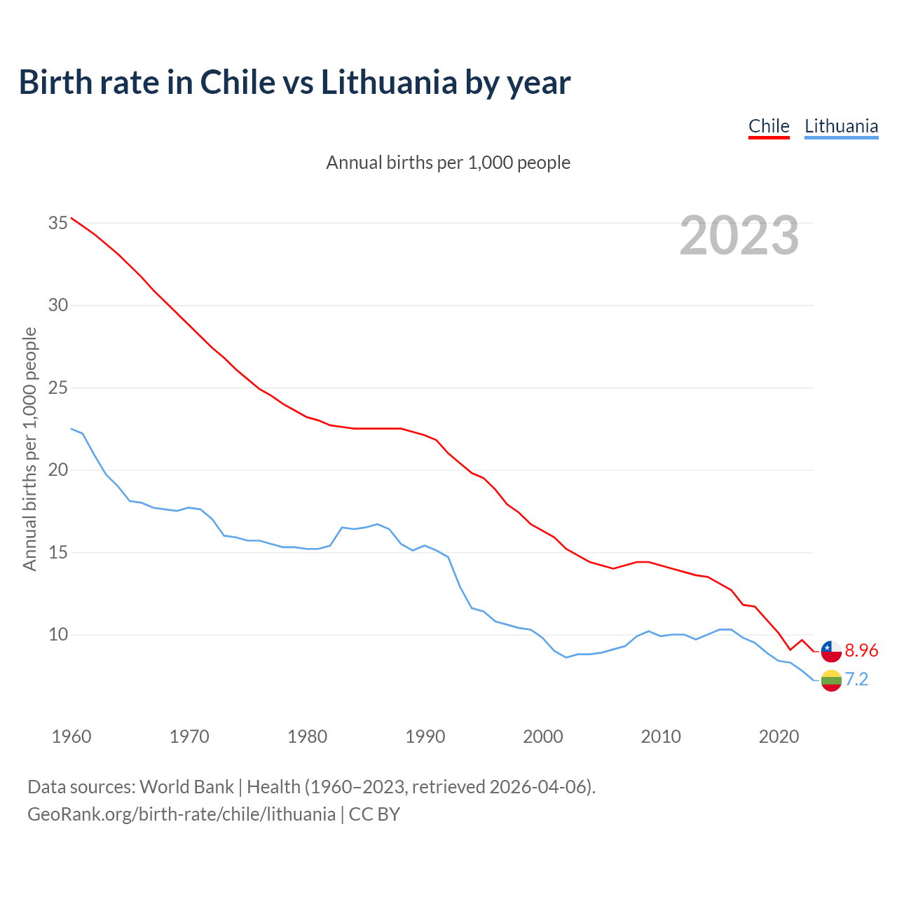 GeoRank.org/birth-rate/chile/lithuania | CC BY