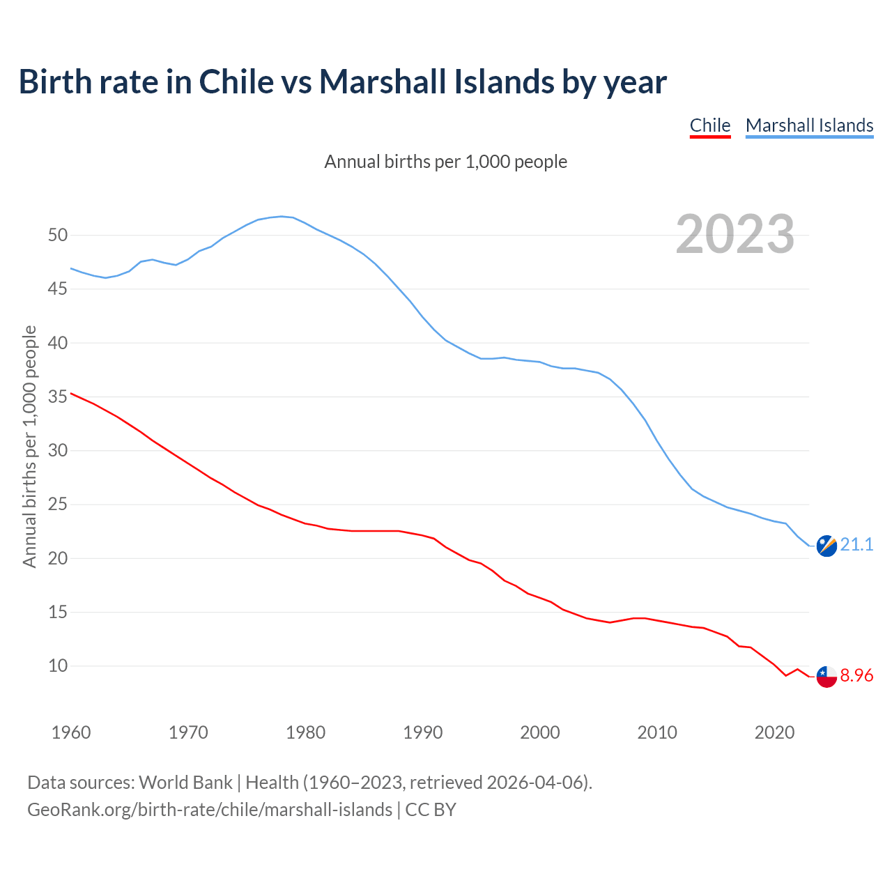 GeoRank.org/birth-rate/chile/marshall-islands | CC BY