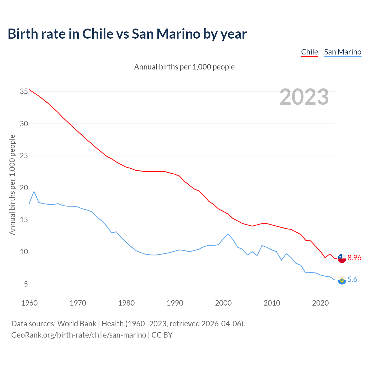 GeoRank.org/birth-rate/chile/san-marino | CC BY