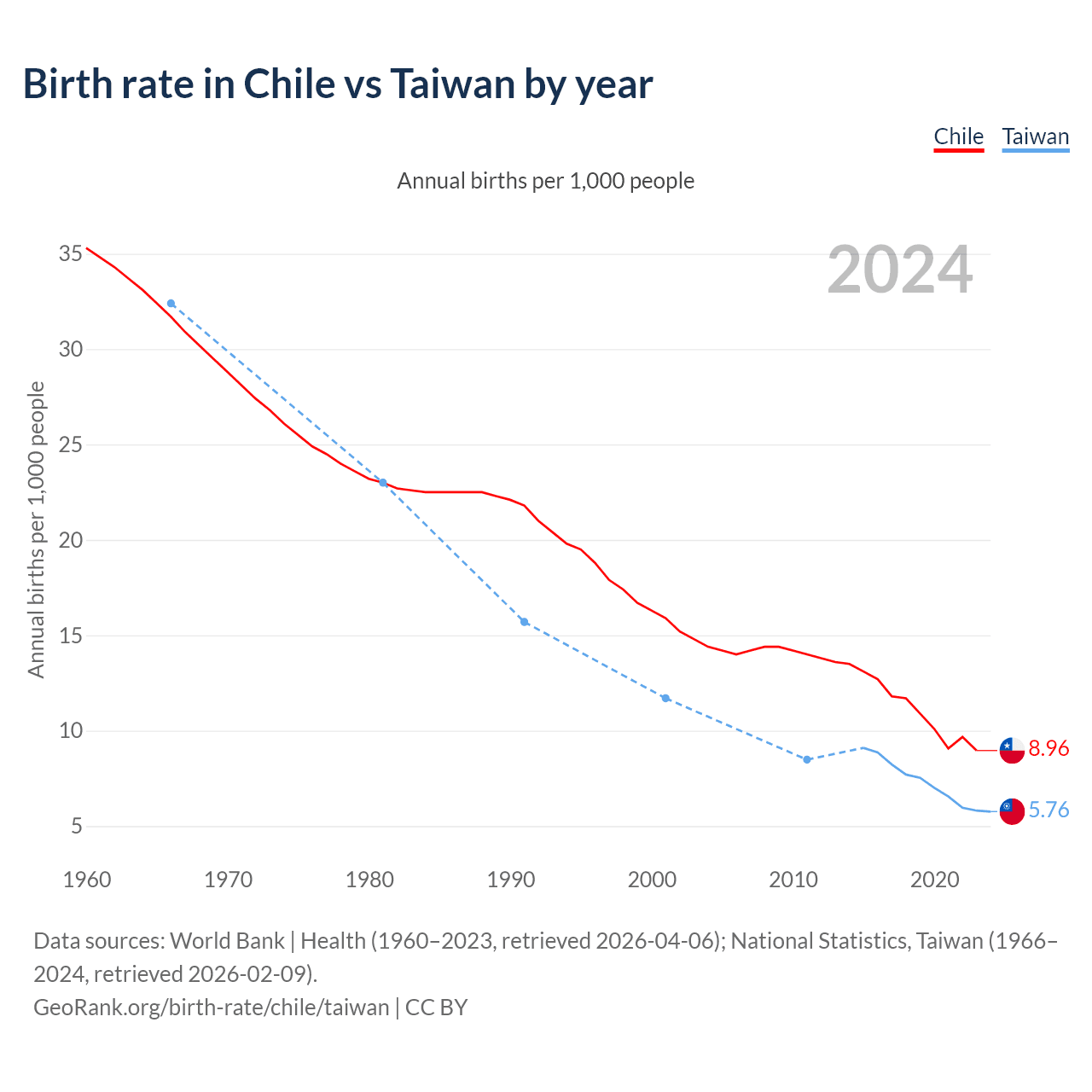 GeoRank.org/birth-rate/chile/taiwan | CC BY