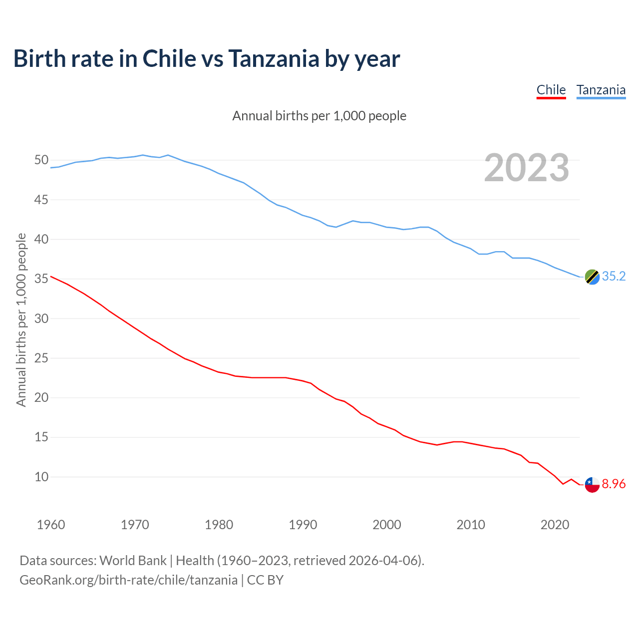 GeoRank.org/birth-rate/chile/tanzania | CC BY