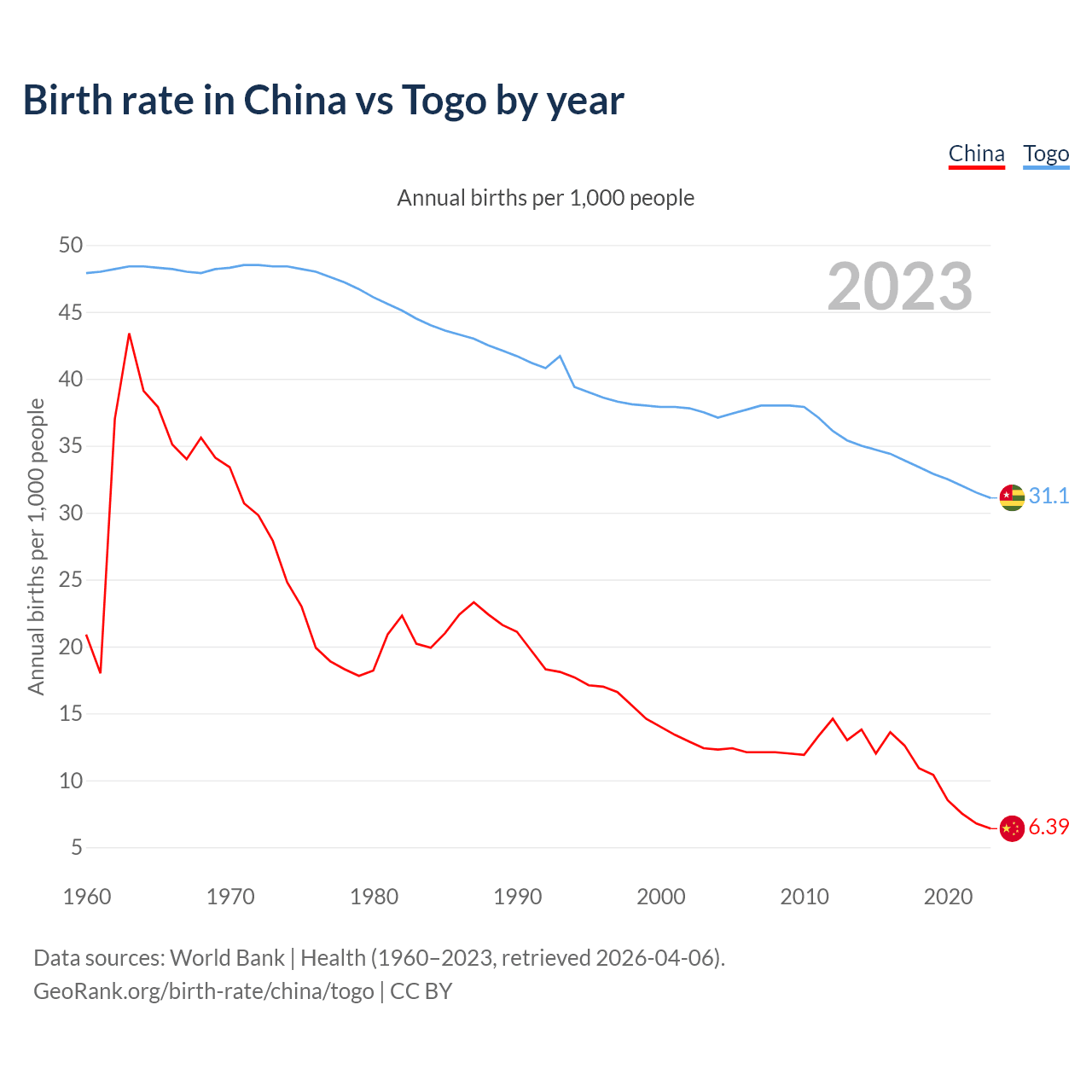 GeoRank.org/birth-rate/china/togo | CC BY