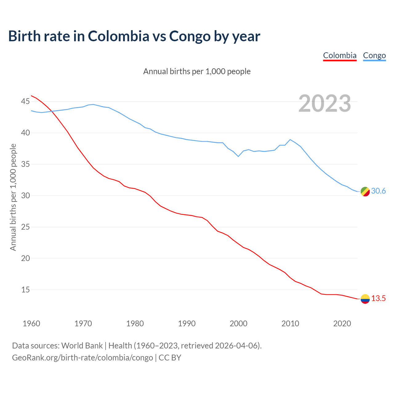 GeoRank.org/birth-rate/colombia/congo | CC BY