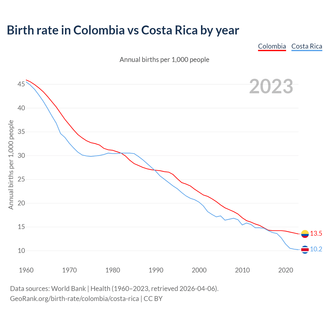 GeoRank.org/birth-rate/colombia/costa-rica | CC BY