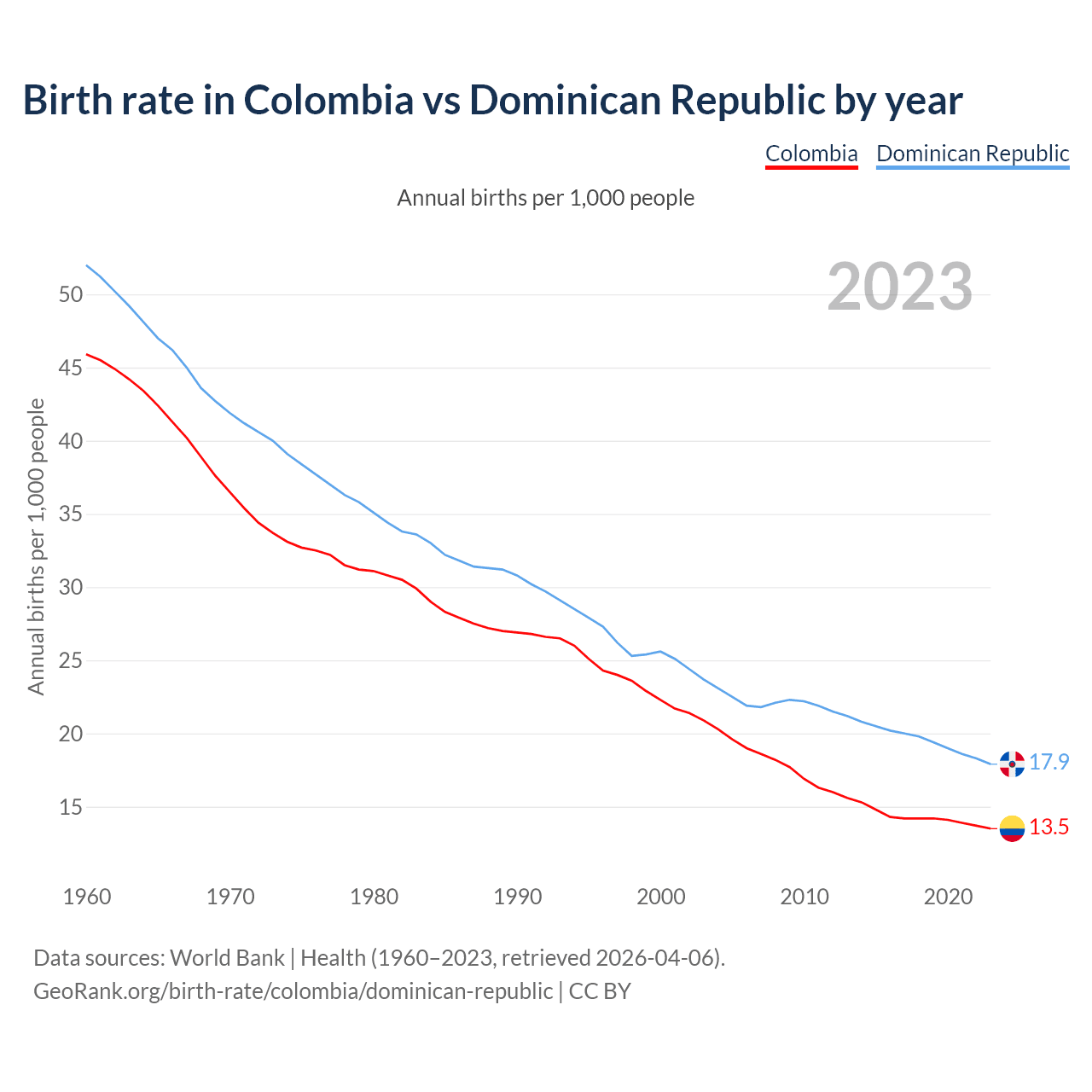 GeoRank.org/birth-rate/colombia/dominican-republic | CC BY