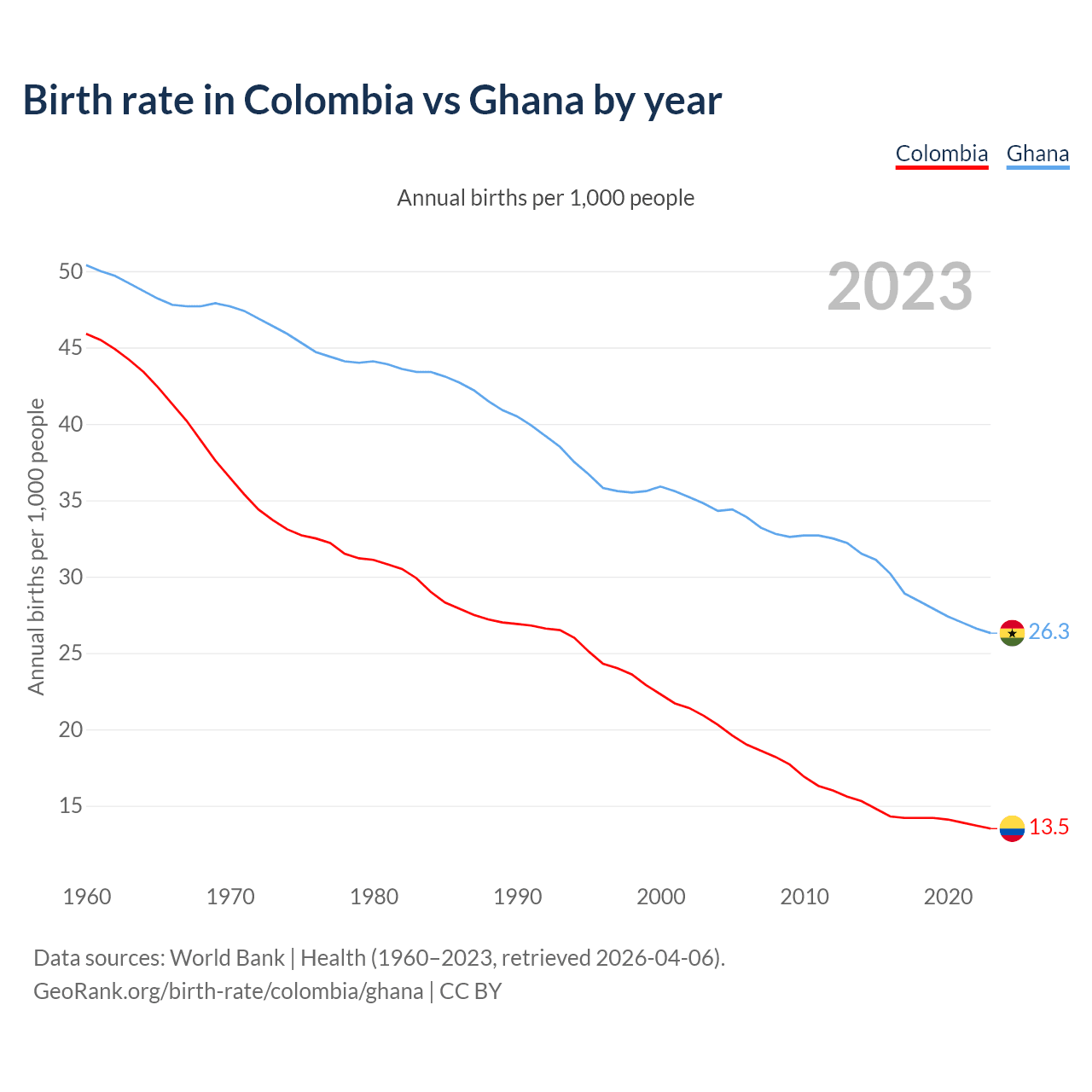 GeoRank.org/birth-rate/colombia/ghana | CC BY