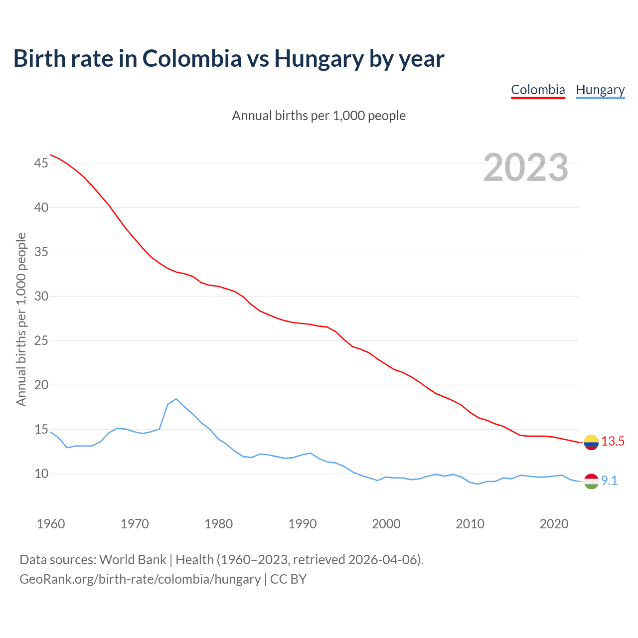 GeoRank.org/birth-rate/colombia/hungary | CC BY