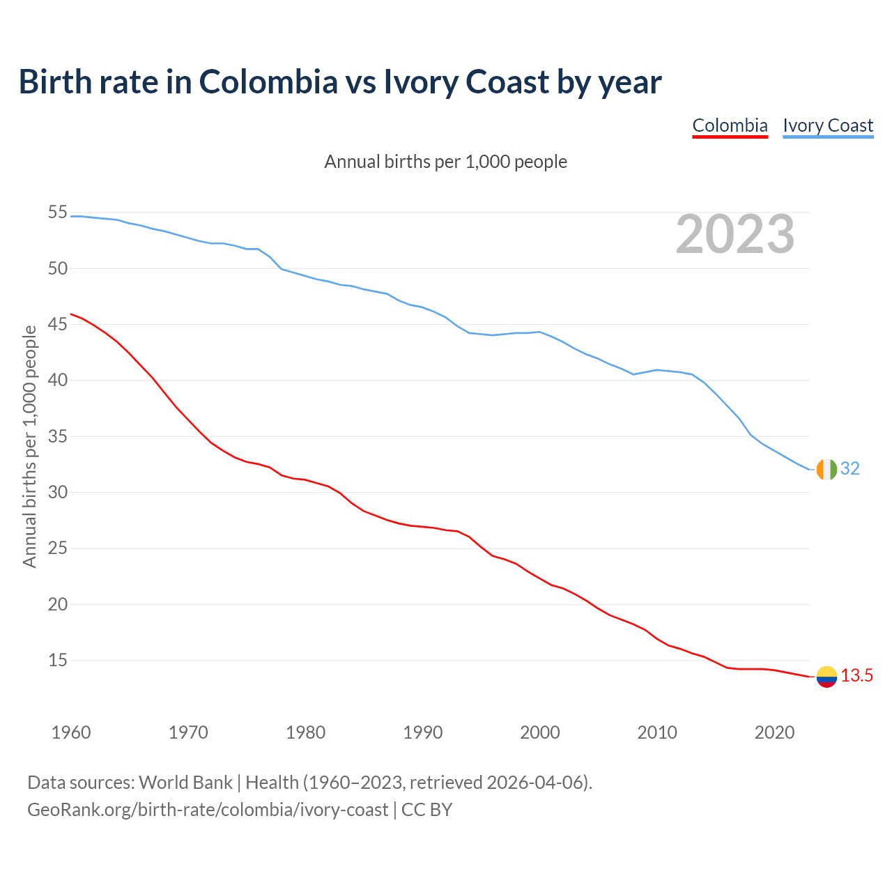 GeoRank.org/birth-rate/colombia/ivory-coast | CC BY