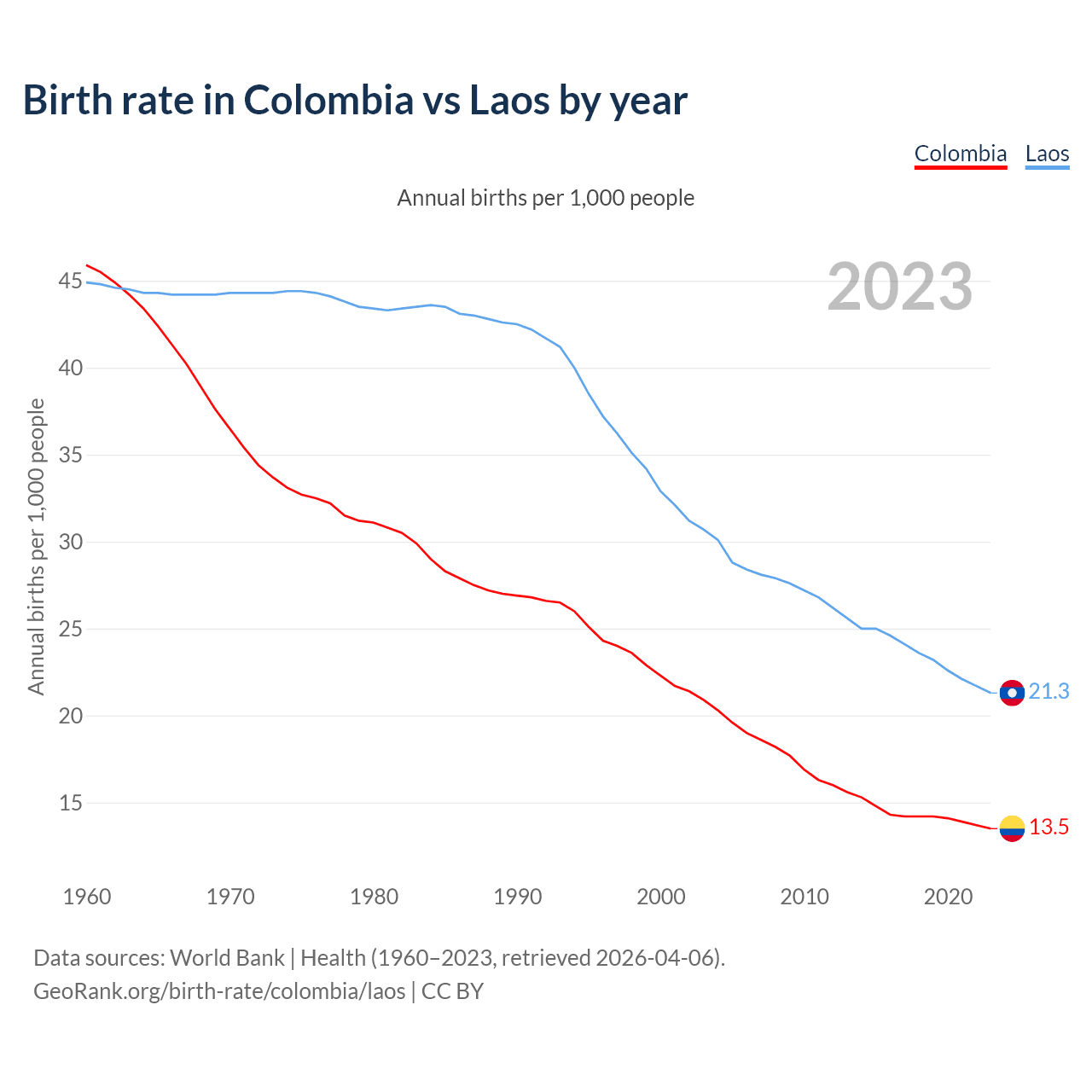 GeoRank.org/birth-rate/colombia/laos | CC BY