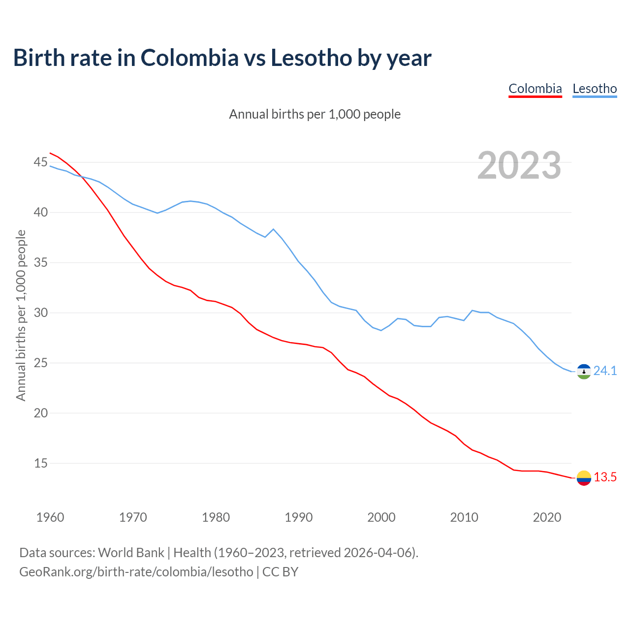 GeoRank.org/birth-rate/colombia/lesotho | CC BY